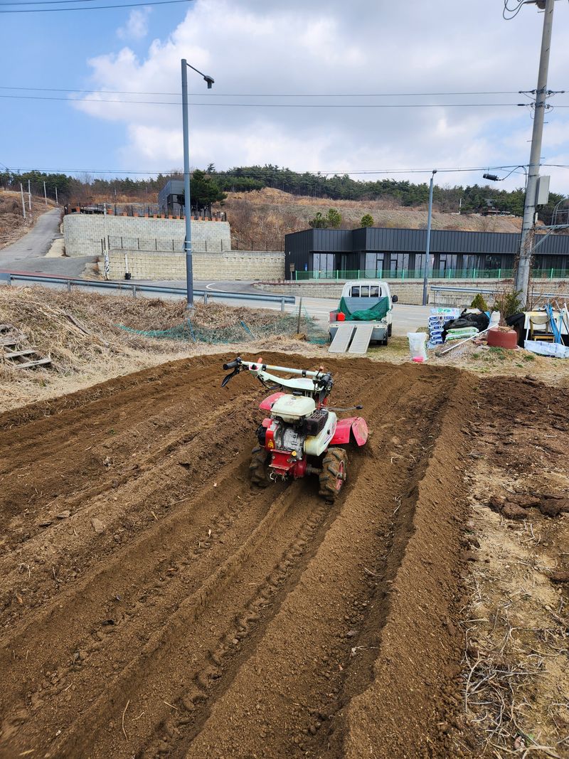 감자 심을 준비 퇴비 뿌리고 밭갈이
