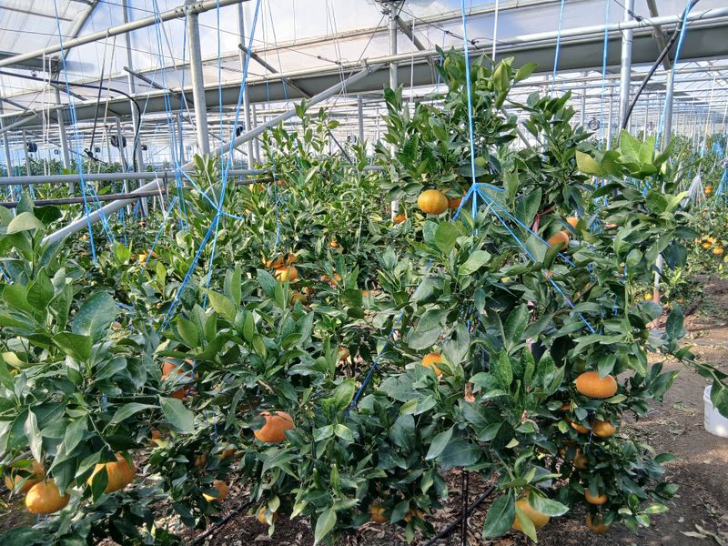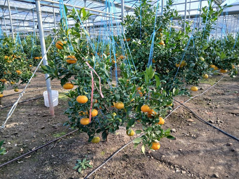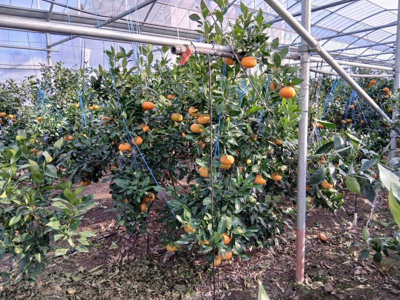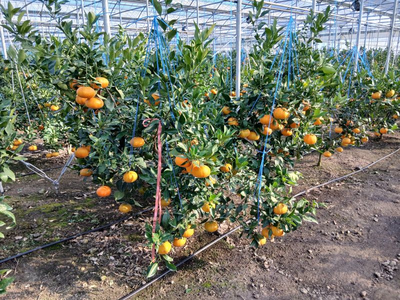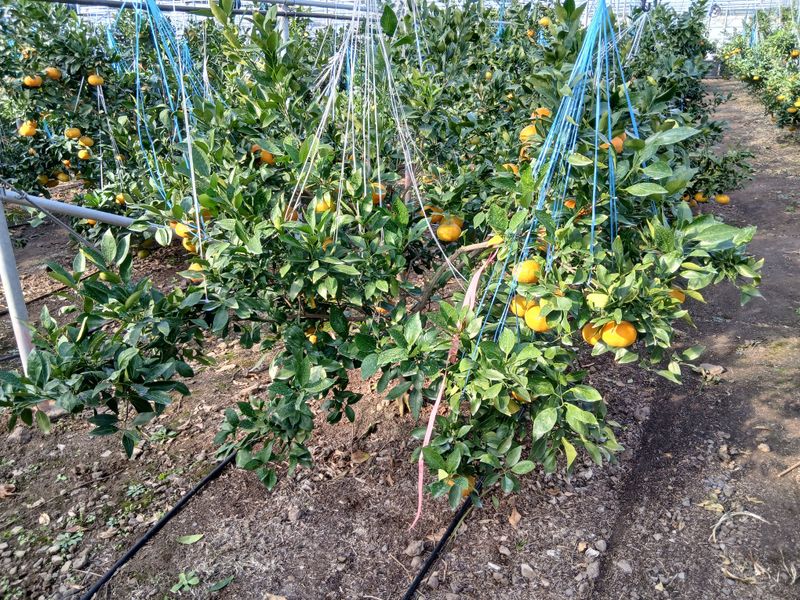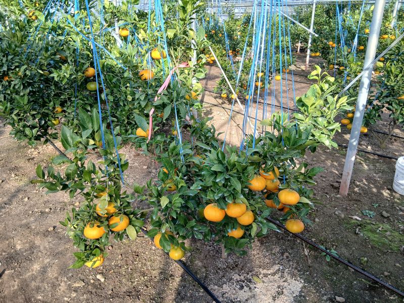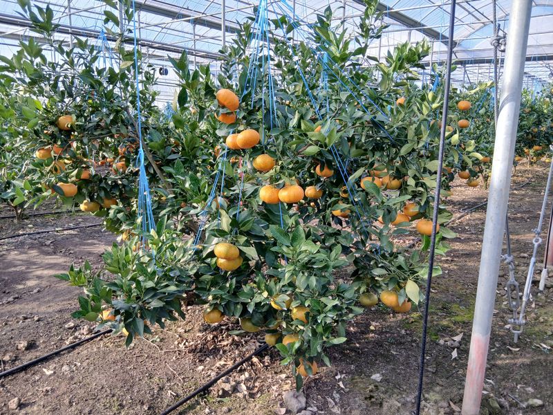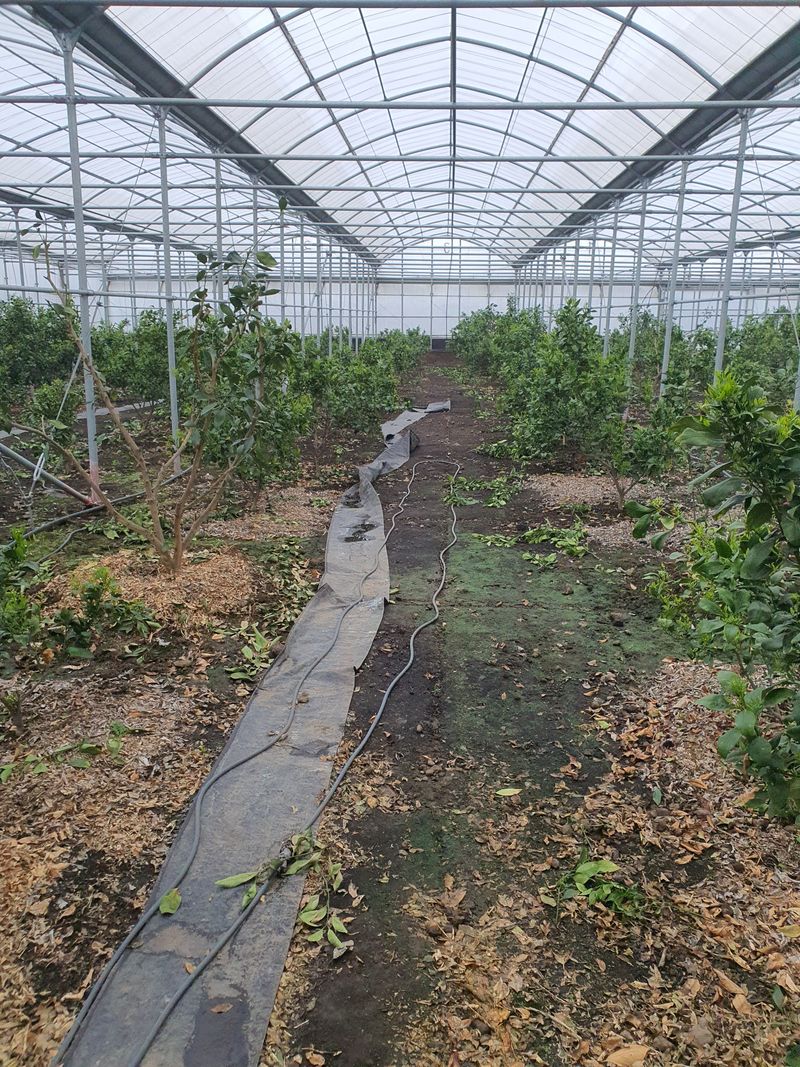 토양살충제 살포 레드향밭만. 장모님하우스 몽땅하우스 레드향밭 오전에 열매줍기