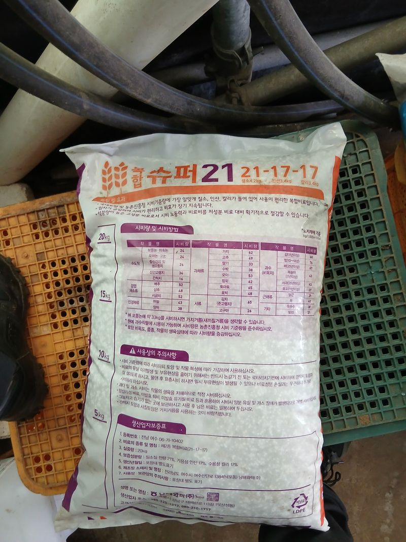 요소비료8포 레드향밭 밑거름 배포 모터펌프 1시간물줌 달콤비료 20포 천혜향밭 배포 모터펌프로 1시간30분 물줌