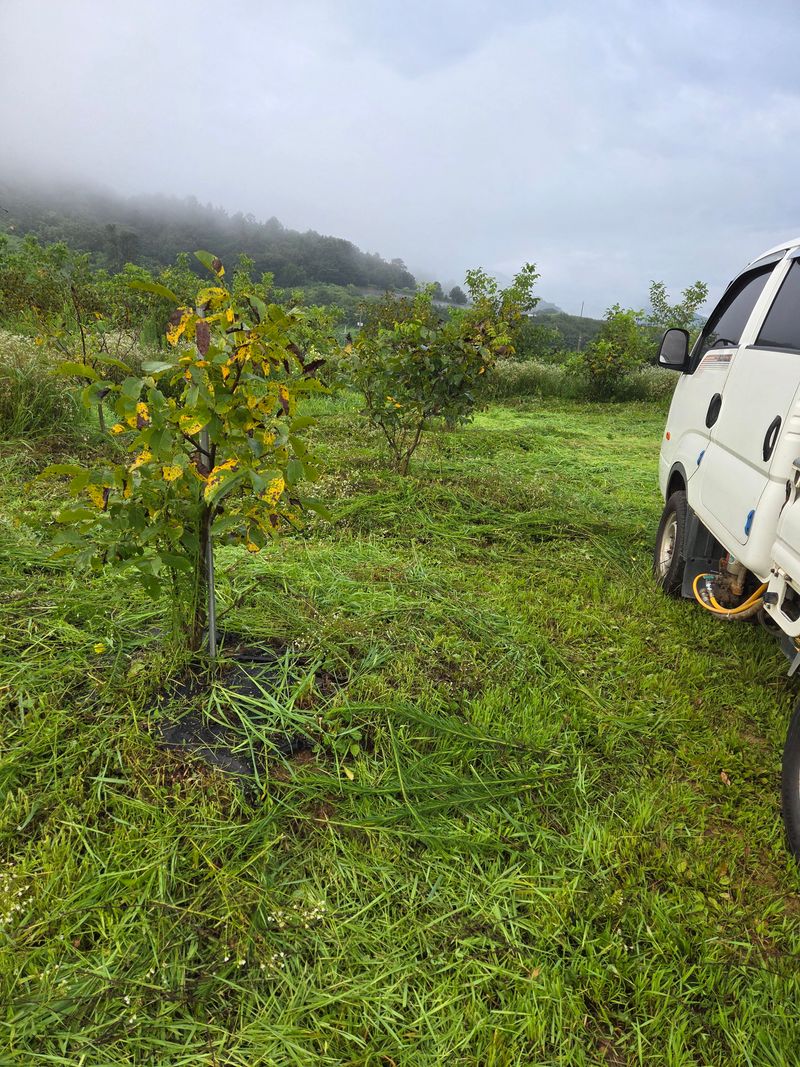 방제작업(살충제, 탄저농약) 상전 1,2밭, 소양호두나무
