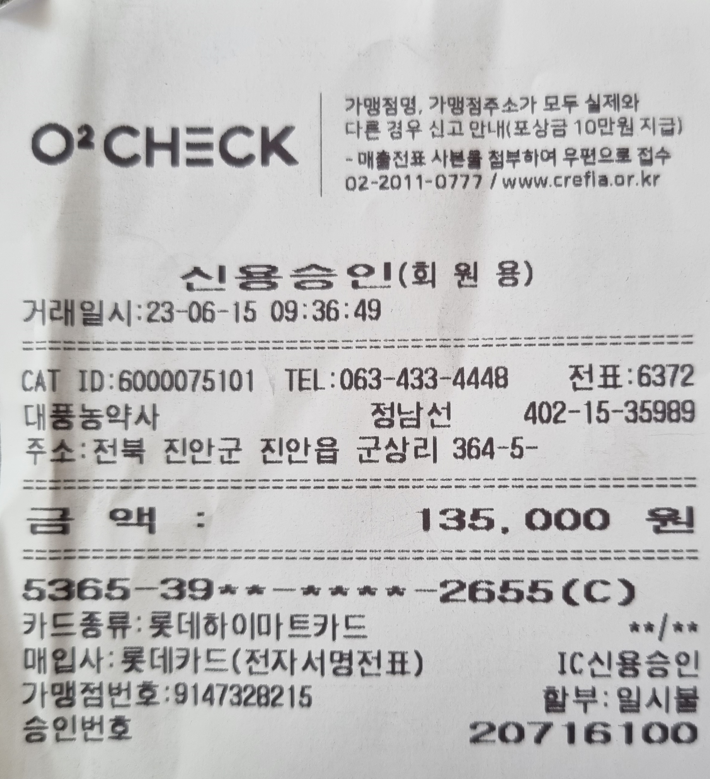 하우스 비닐 치기 연장리 산53-4 9m×20m 1.5mm비닐 구매가격 245,000원
