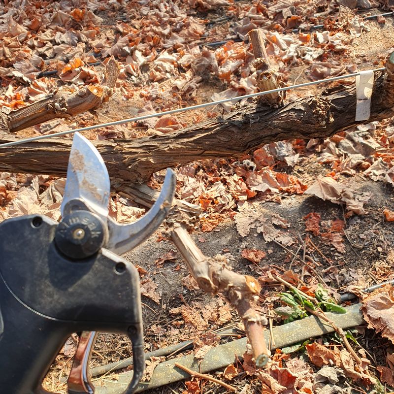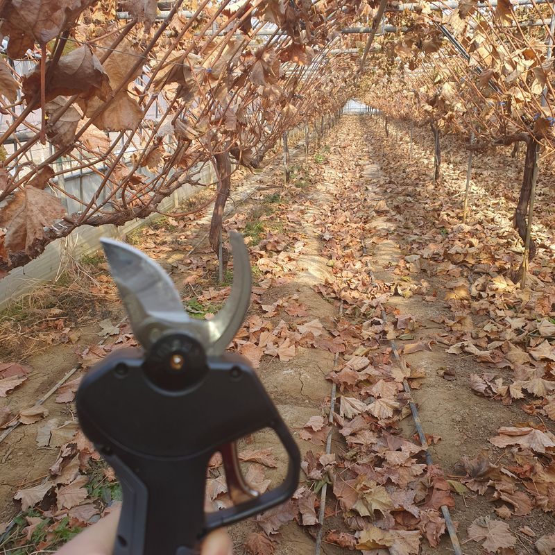 전지자동가위로 샤인머스켓가지치기 2동작업함