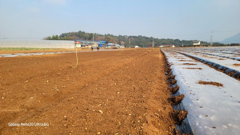 양배추 식재전 비닐쒸우기