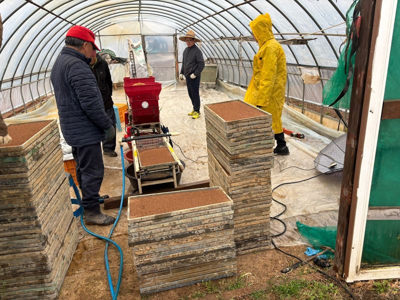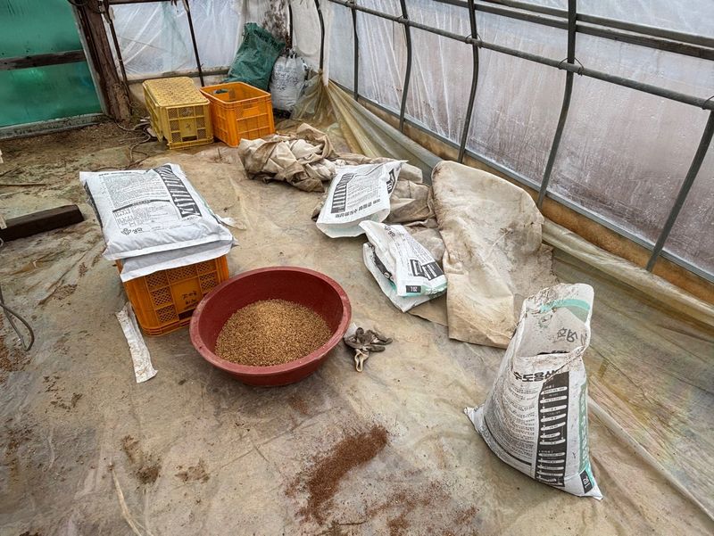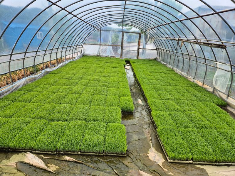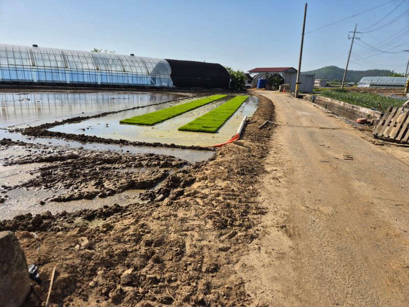 못자리 작업 모판 논못자리 298장 모판 비닐하우스 224장 1. 비닐하우스 모판옮기기 및 논못자리 만들기(3칸 하나씩철사를 꽂고 비닐을3 덮고, 6칸에 하나씩 비닐위에 철사를 꽂음) 2. 마당의 모판옮기기 및 못자리만들기(모판깔고 그늘막을 덮고 물을 댐) 3. 못자리...