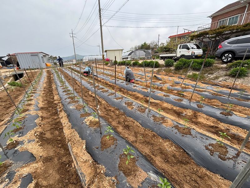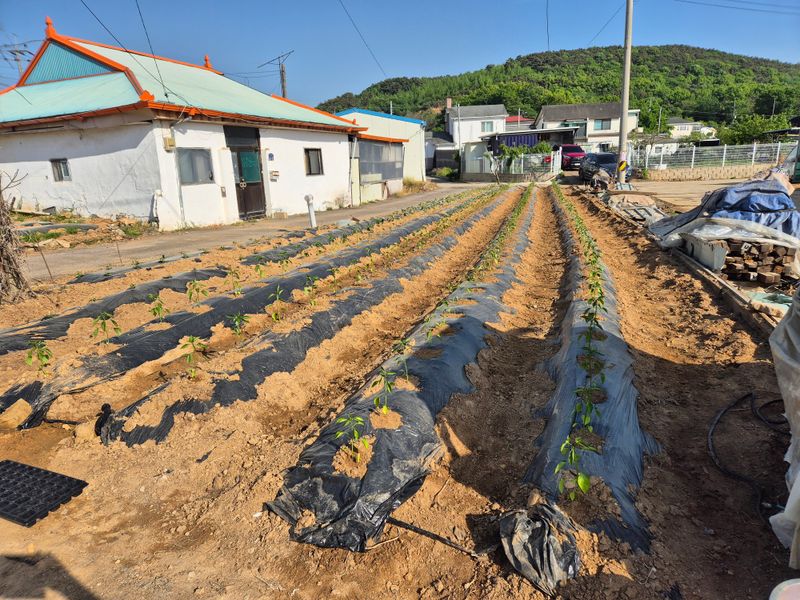 1. 고추심기 고추 300주 오이고추 10주 청양고추 5주 토마토 6주 가지 15개 2. 큰논초벌써래질 3. 트랙터 기름채우기 4. 모판요소주기