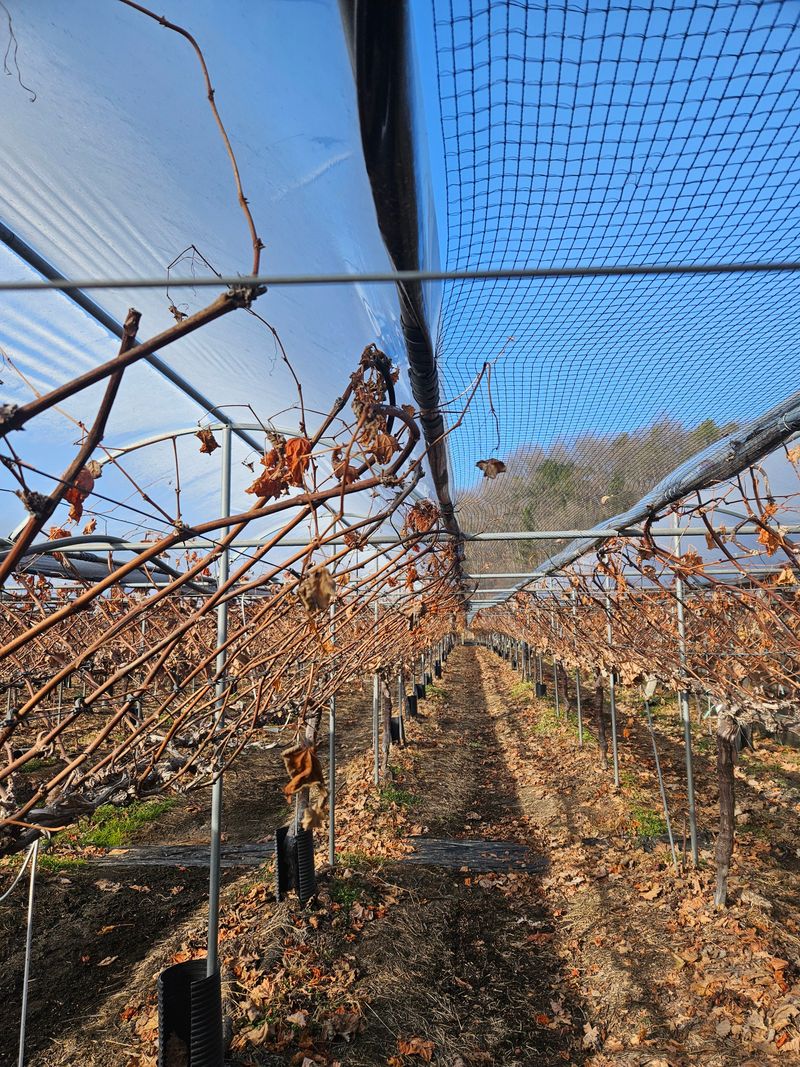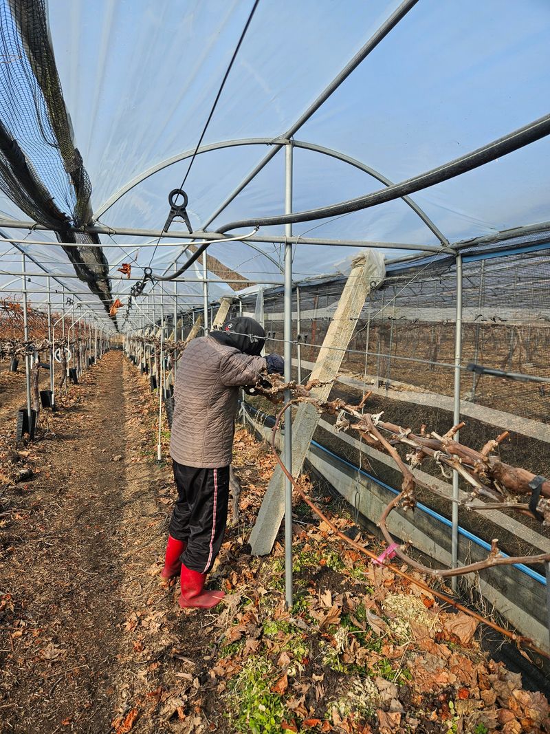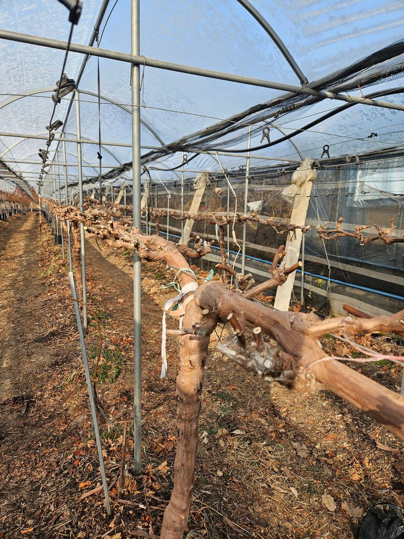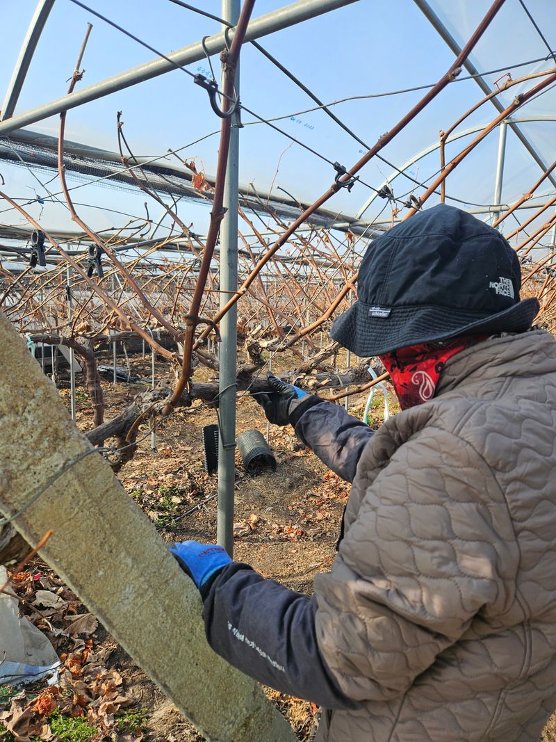 그동안 미뤄났던 포도줄기 고정핀 해제작업을 성탄절을 맞아 4시간넘는 작업끝에 무사히 마쳤다. 바람이 불어 쌀쌀함이 있었지만 무사히 작업을 마쳐 다행이다.