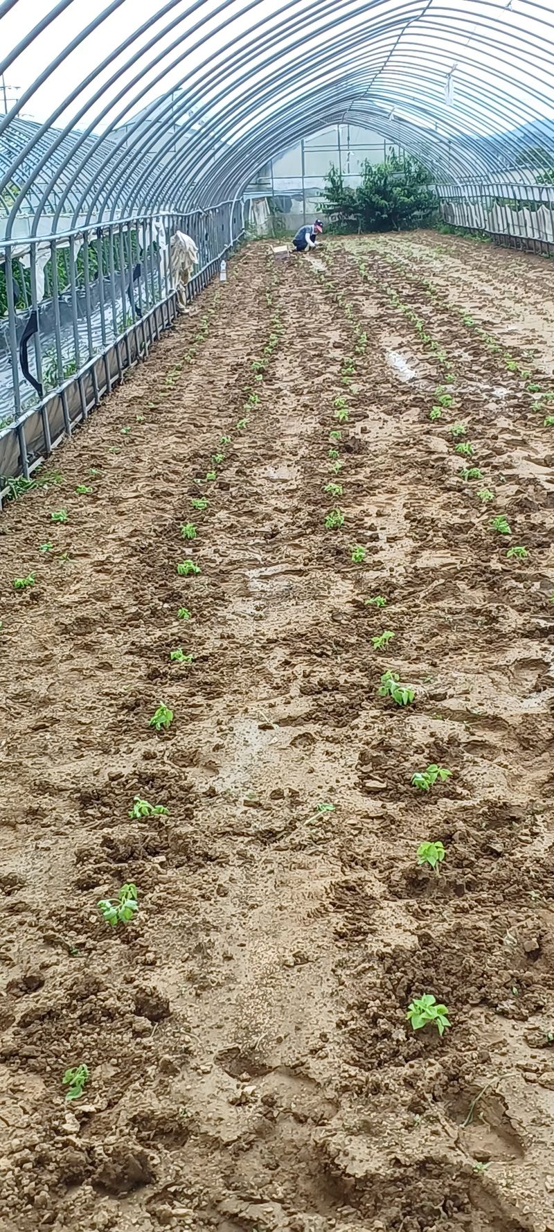 오늘 들깨밭에 이식하였다 비가 많이와서 질척여서 깨모종이 힘들었다 풀약.안나는약 바로주었다