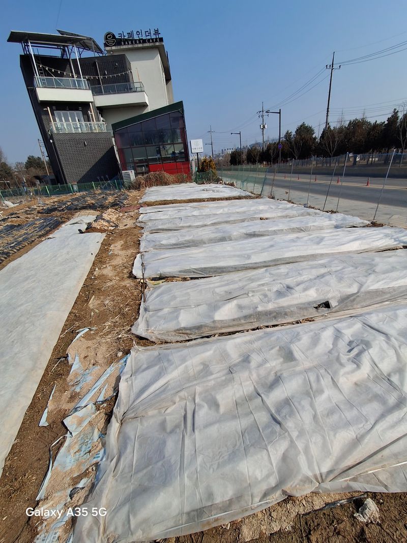 마늘밭 부직포 걷기