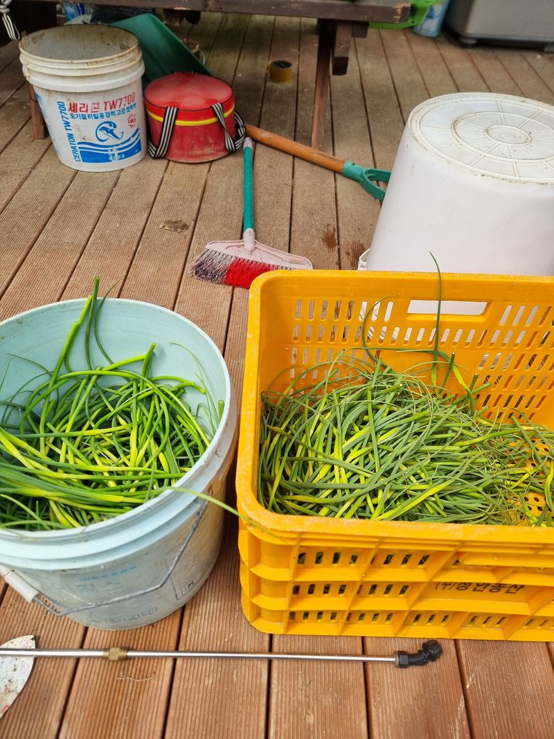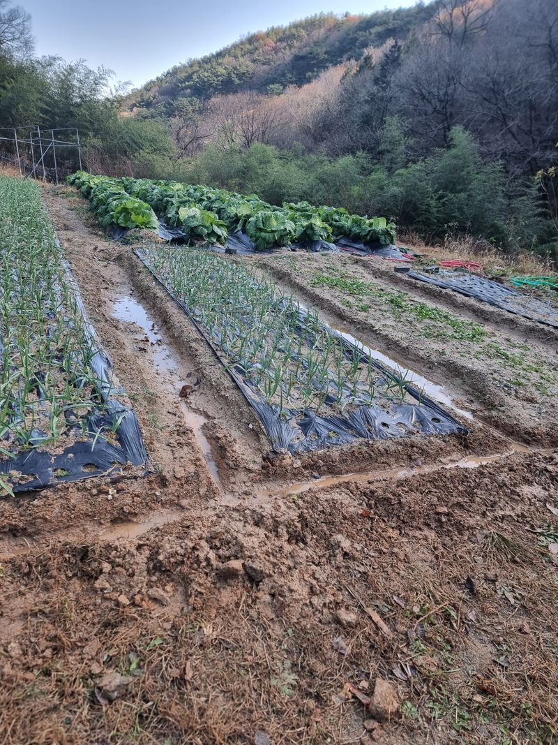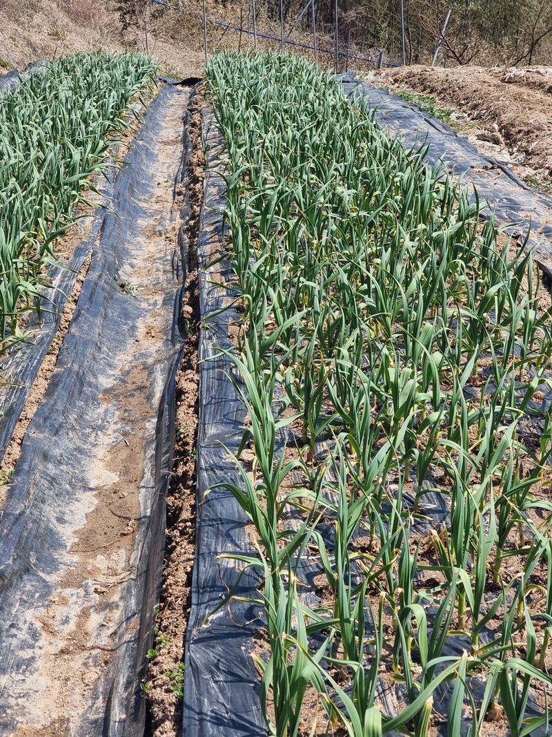 마늘밭 물 주기 잡초뽑기