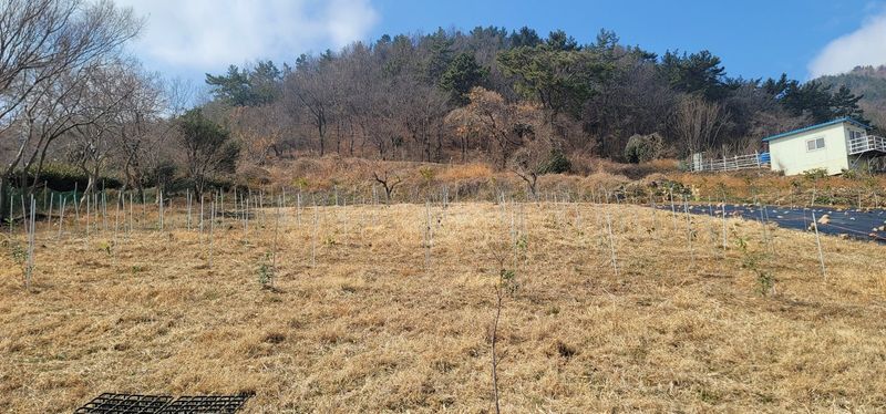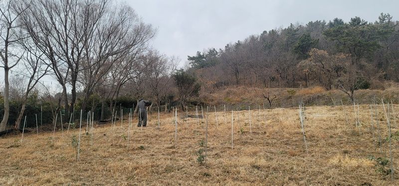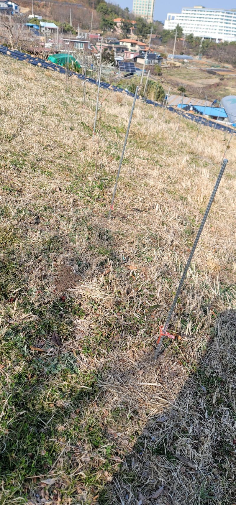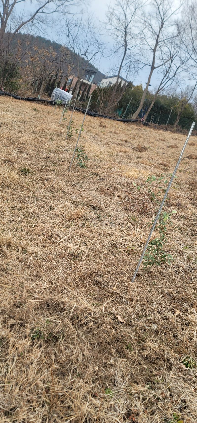 황칠묘목 35주 추사식재완료 (총 100주) 묘목지지대 130센티 100개 설치 *황칠묘목100주 20만원 (당근 삶의충전소) *지지대 100개 5만원(11번가)