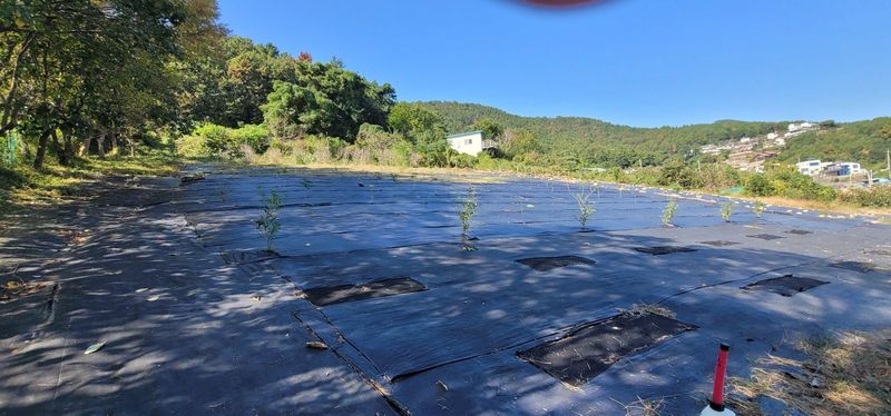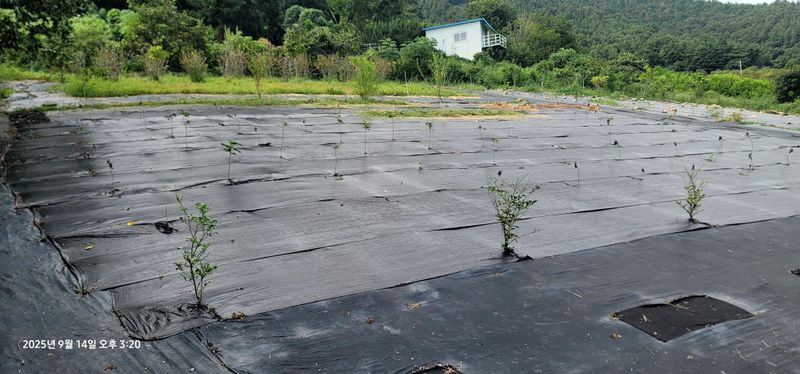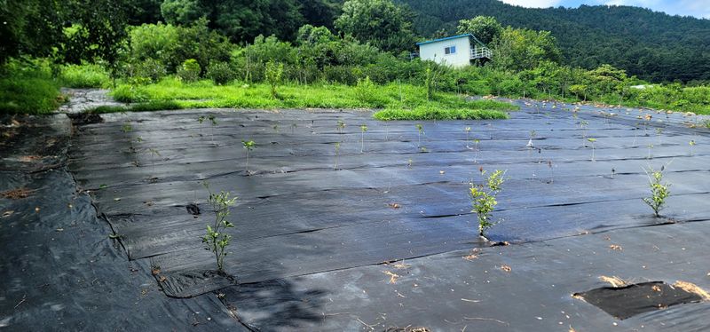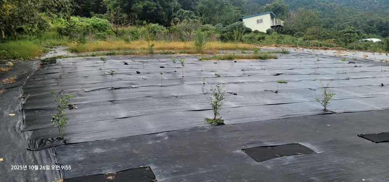 40×60부직포 황칠묘목잡초방지용으로 52개 설치작업 13~17시(4시간)