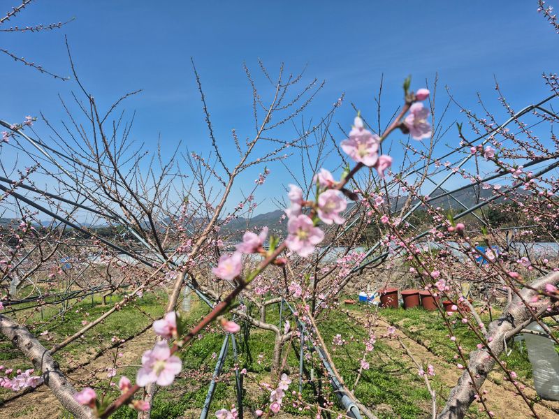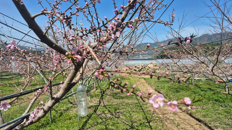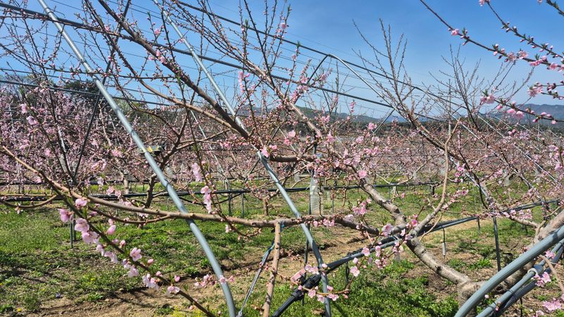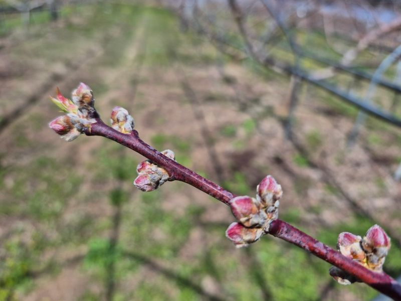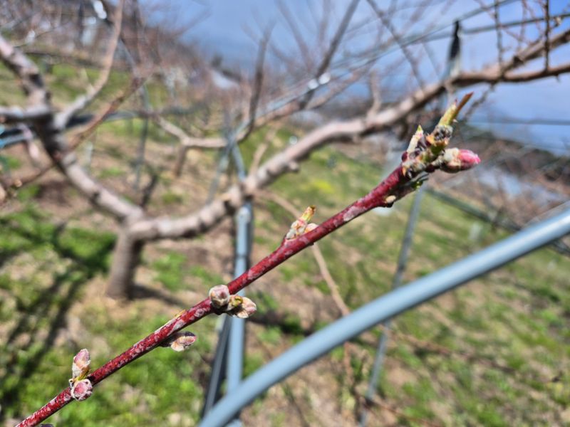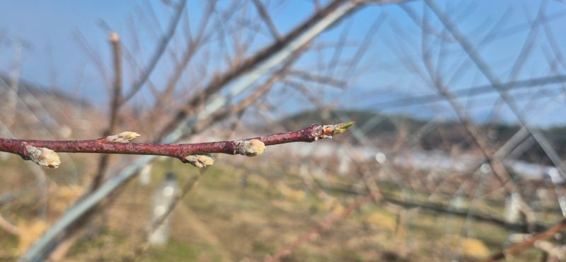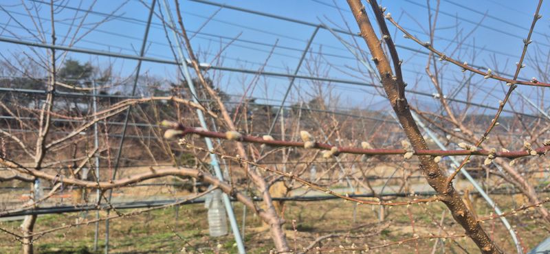 1.최근 따뜻한 봄날씨가 지속되어 눈들이 부불고 일부 가지끝의 잎눈에서 잎들이 조금 나오고 있는 것이 보인다. 꽃눈도 곧 살짝 벌릴것 같은 느낌 ~ 2.겨우내 주간부를 감싸주었던 볏짚보온재를 모두 제거해주고 바닥의 잔가지와 결속끈 등 부산물을 깨끗이 청소 하였다. 과원...