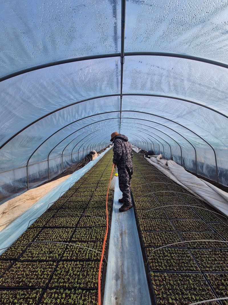 1월12일 ☆수리취 500판 작업 ☆취나물 500판 작업 -하우스 5동 물주기 -인원 남자 2명 여자3명 -상토 70포 -105구트레이1000장 -비니루 이불 6장 온풍기1EA 활대200개