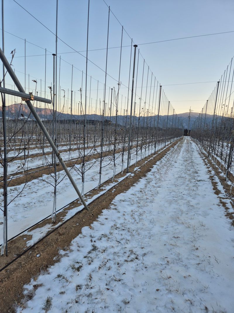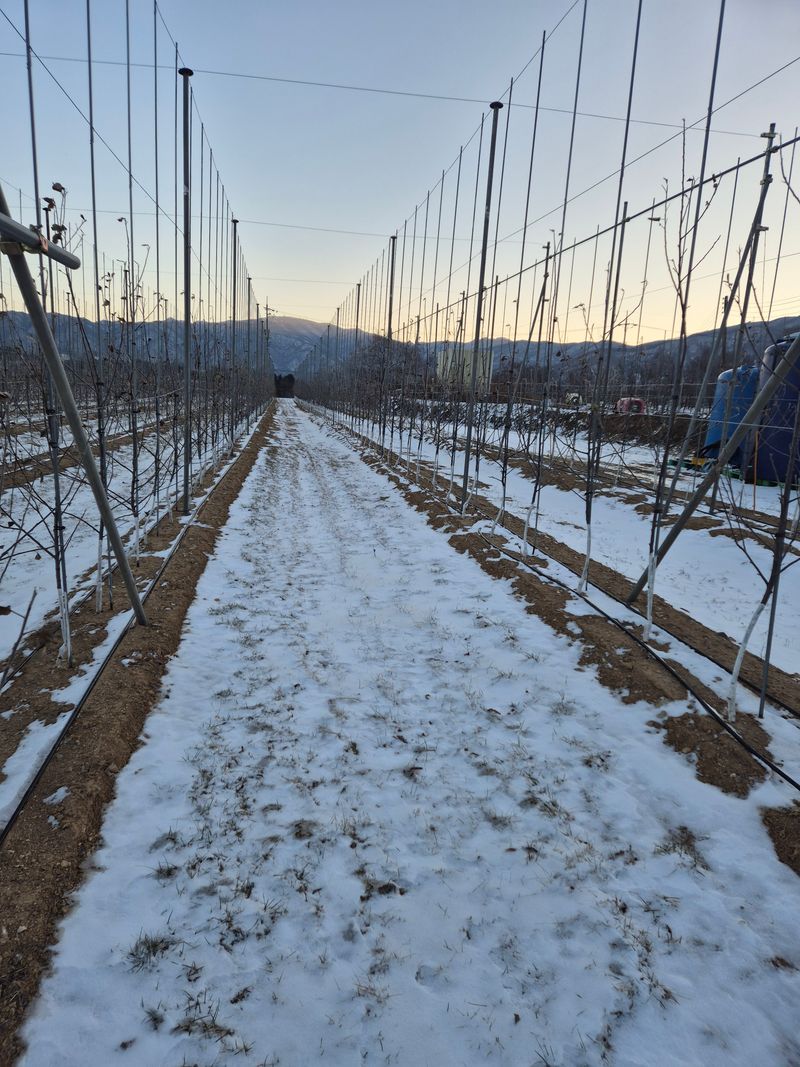 사과나무 관리 26년부터 수확이 가능 할것같습니다 농사를 전문적으로 해야되나 배워가면 기술을 축척 합니다 ☆폭 3미터×80CM간격으로밀식재배 2만평 식재시 12억 들어 갔지요