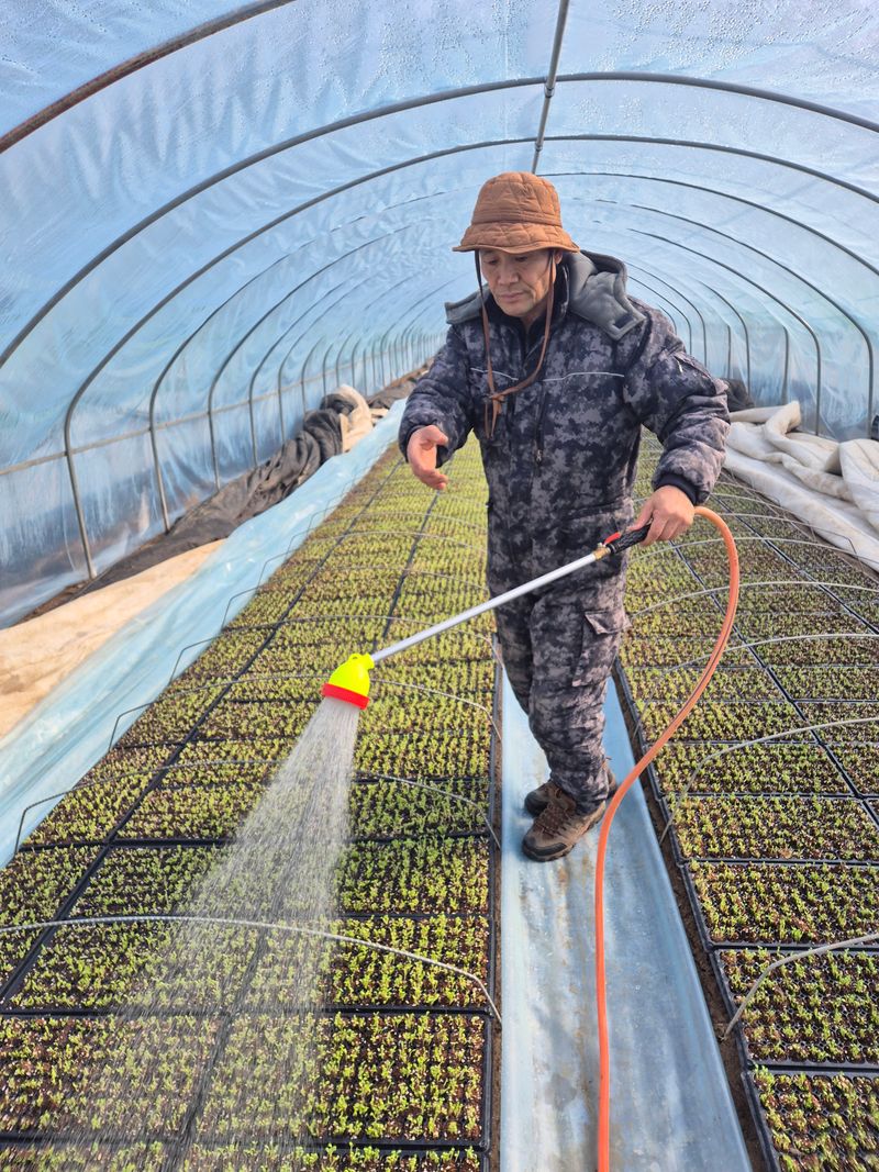 곰취묘종 5월수확예정 영양제 녹음병약 살포 저온에 보온대비강조