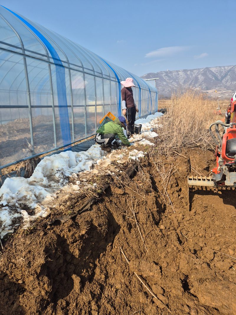 ■곰취 월동 준비 ☆월동1개월이상 잠을재우고 2중3중 비닐 이불덮고 1월중순온풍기 가온 준비끝 3천평에1억 기대해봅니다 5월20일쯤저거후 수박재배2모작들어감