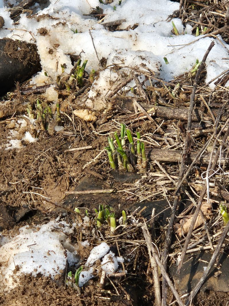 800고지 산마늘밭이 음지쪽텃밭이라 아직도 눈이 있고 일부는 얼어 있네요 010 7195 8807 전화번호 요청을 많이 합니다