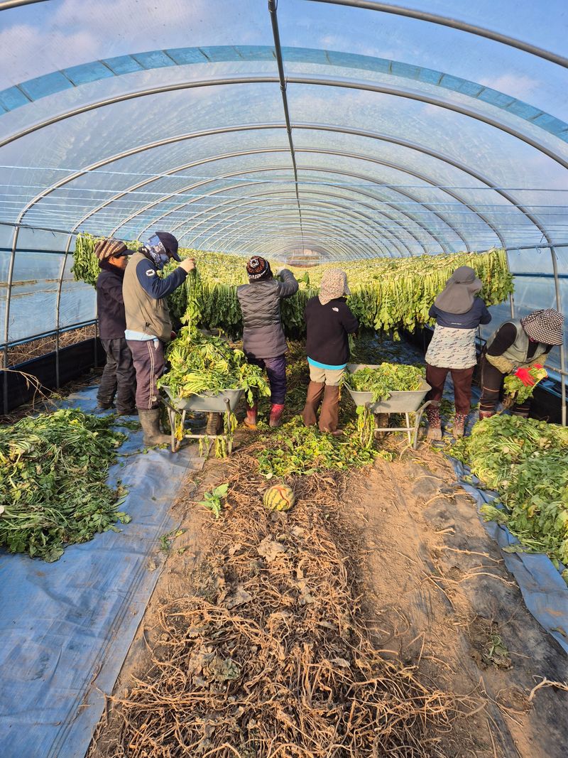 시래기 건조중 차광막 설치및관리 판매예정전 관리중 파란색유지를 위한 이중 차광막설치