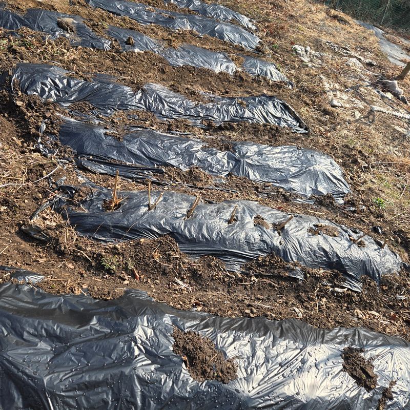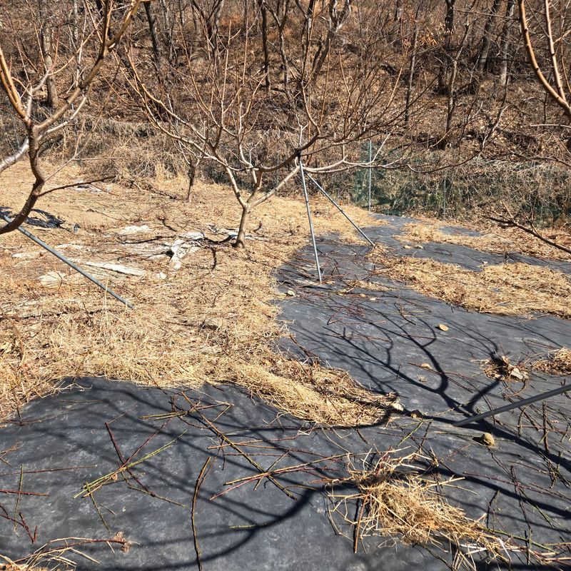 복숭아나무를 심었는데 잡풀과 전쟁입니다 고민고민 하다가 제초메트로 선회했습니다 좋네요 일이 훨신 줄었답니다.