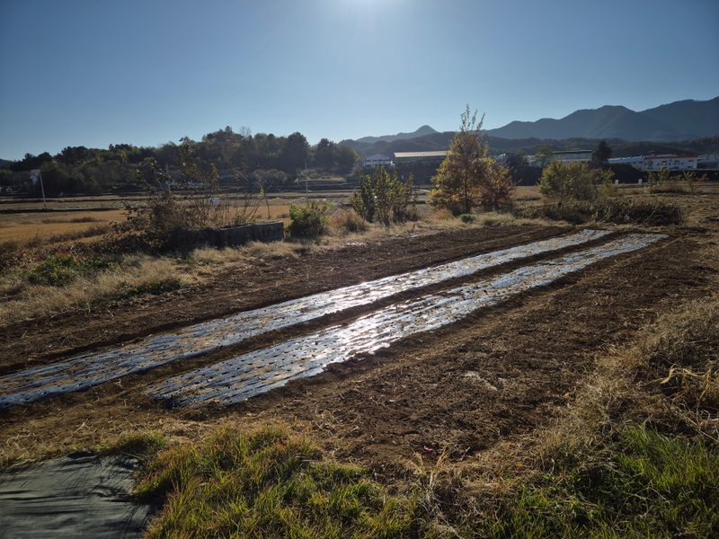 퇴비.밑비료.토양살충제 넣고 경운작업후 비닐멀칭작업완료