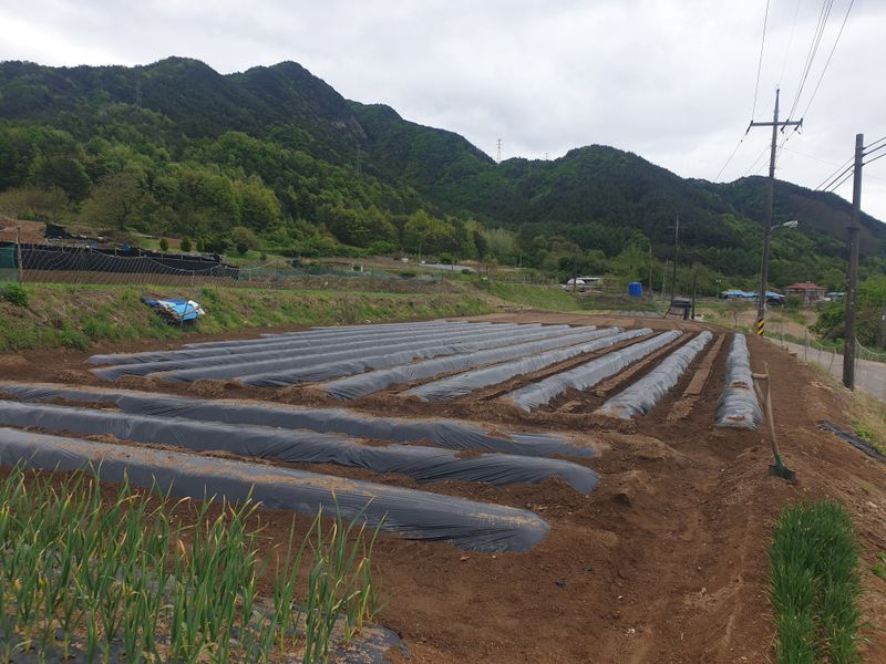 고추소독 - 역병의심 부분 비닐 찢고 리도밀 뿌림
