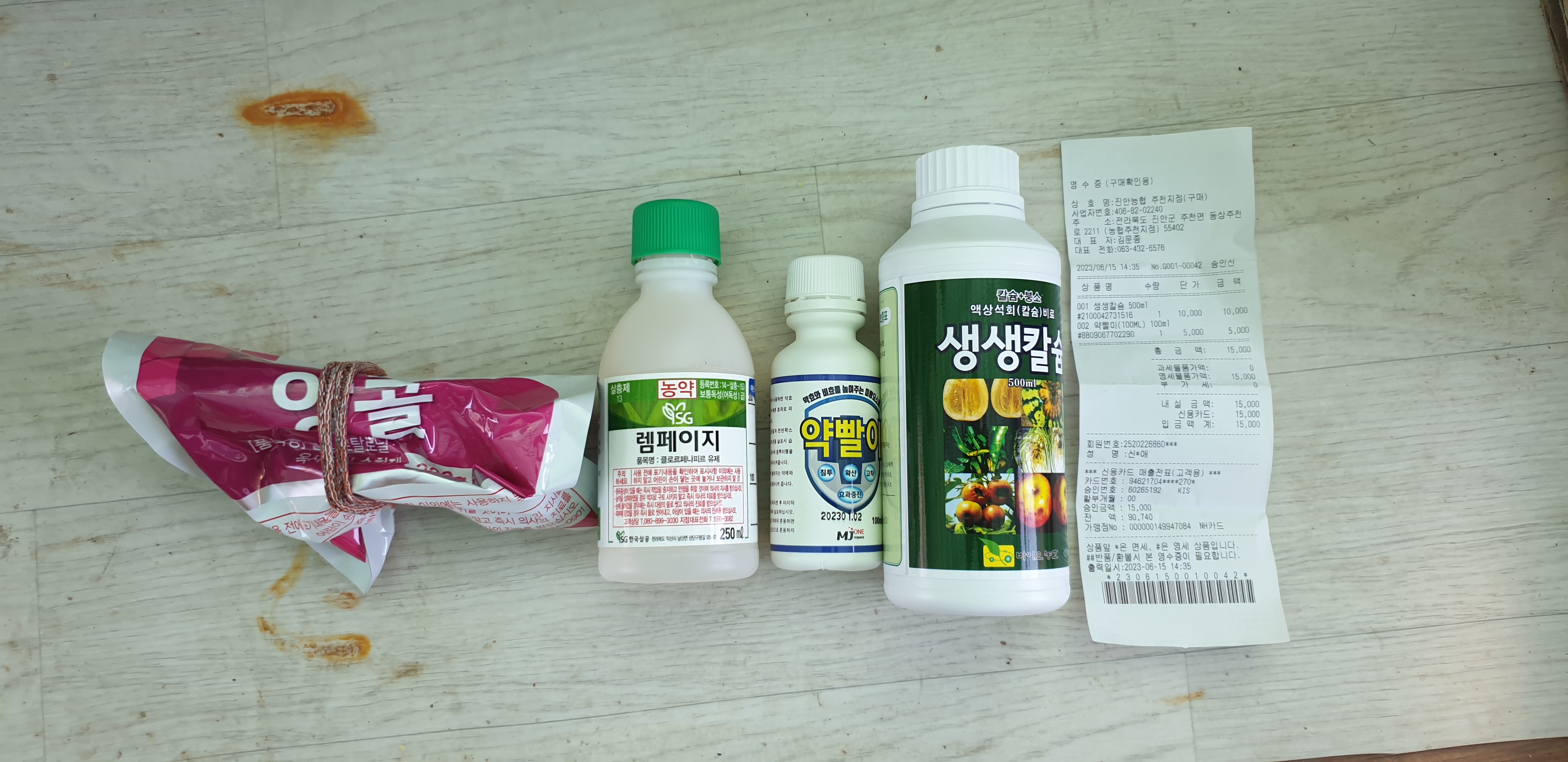 오전 고추 소독(5말) - 앙콜, 램페이지, 생생칼슘, 약빨이, 요소물 조금