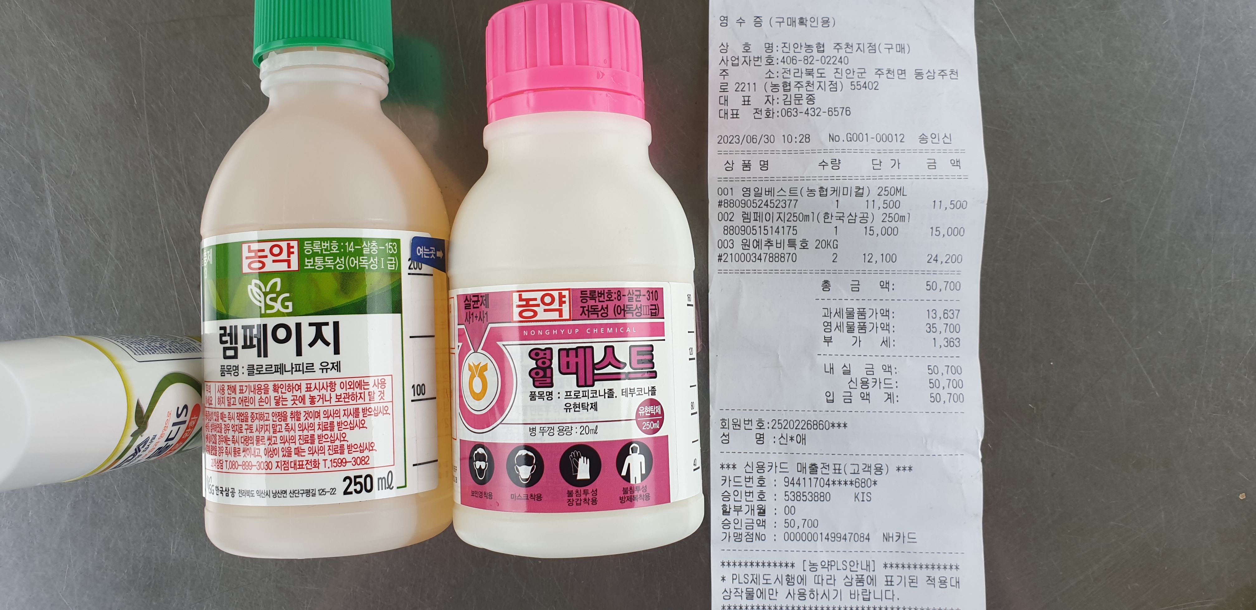 고추소독6말 -램페이지(탄자), 베스트(총채 나방 진딧물), 요소액 조금, 칼슘