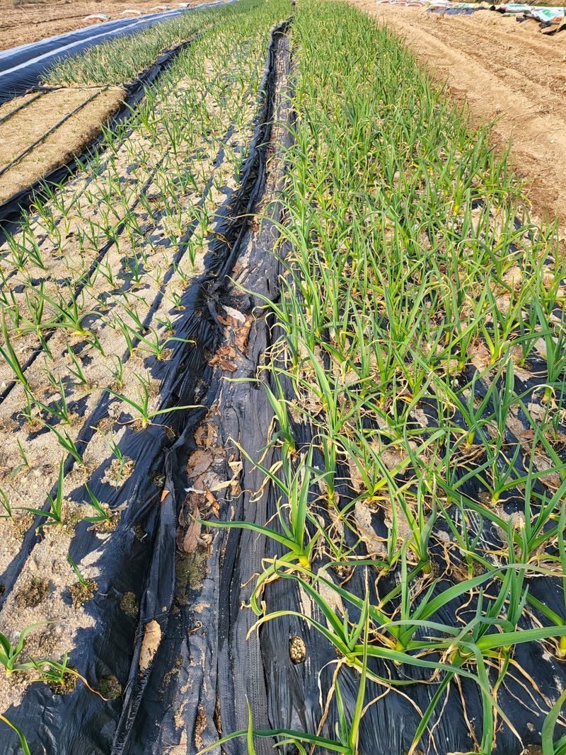 어제는 부직포걷어내기 스퍽뿌려주기 마늘.양파.대파.쪽파 관수1시간해주고 오늘은 비가온다기에 요소 7.8kg뿌려주고 관수시작