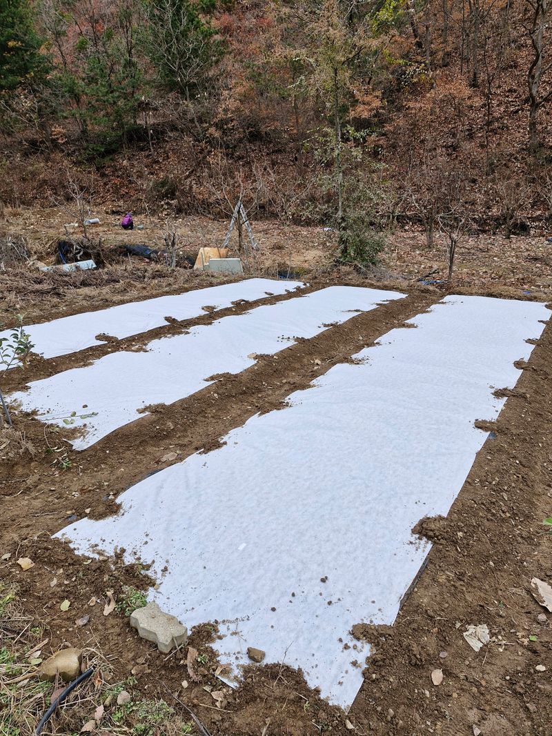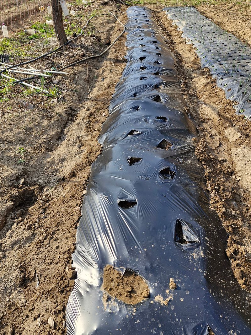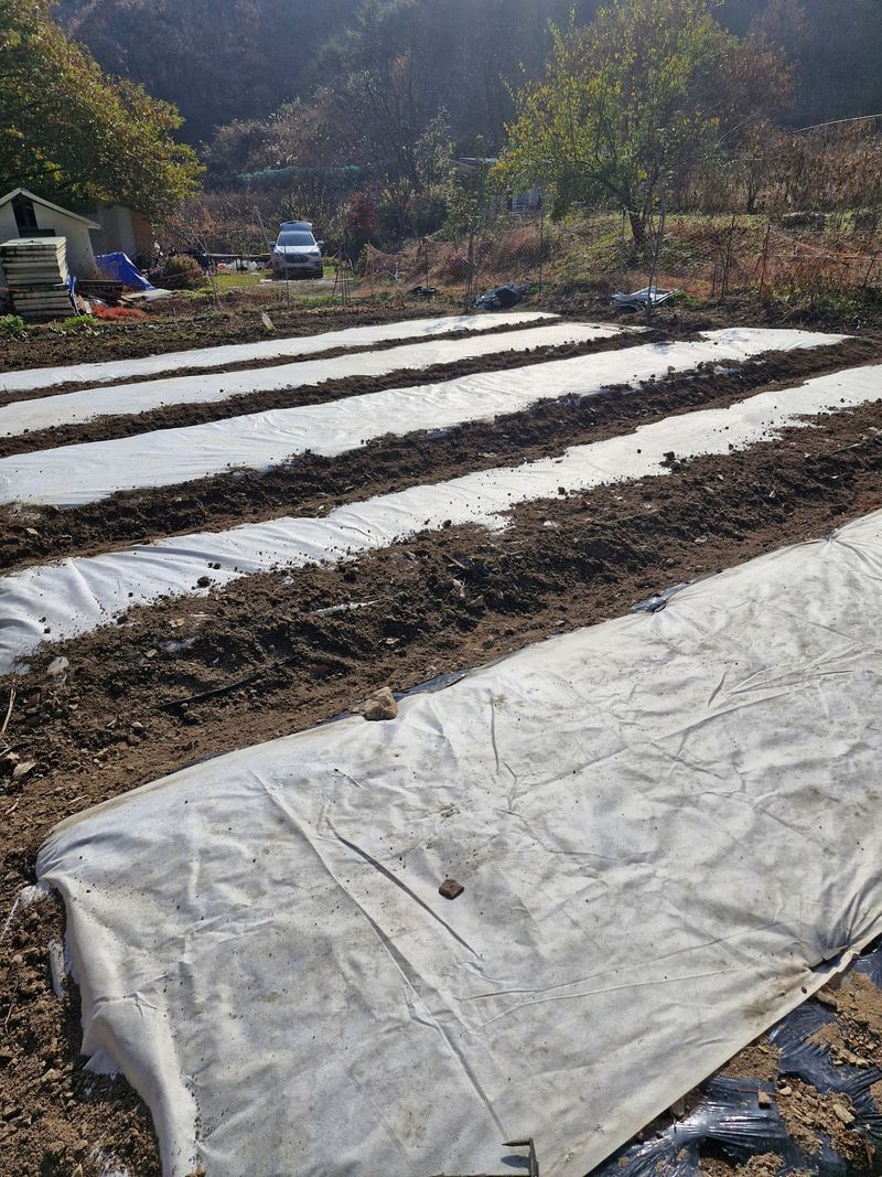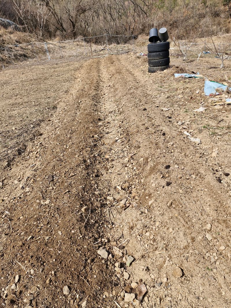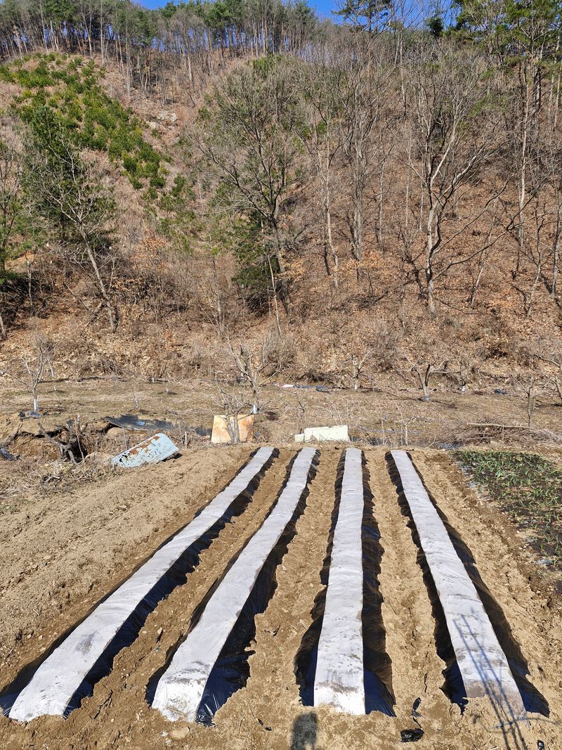 1. 15일 전에 밑거름(퇴비, 유박 복합, 토양살충제)를 살포한 자리에 오늘 청양고추 50cm 간격으로 66개 심을 이랑을 만들고 비닐멀칭 완료 하고, 2. 똑 같은 밑거름에, 유니칼슘 을 추가 하여 대파 심을 이랑 을 만...