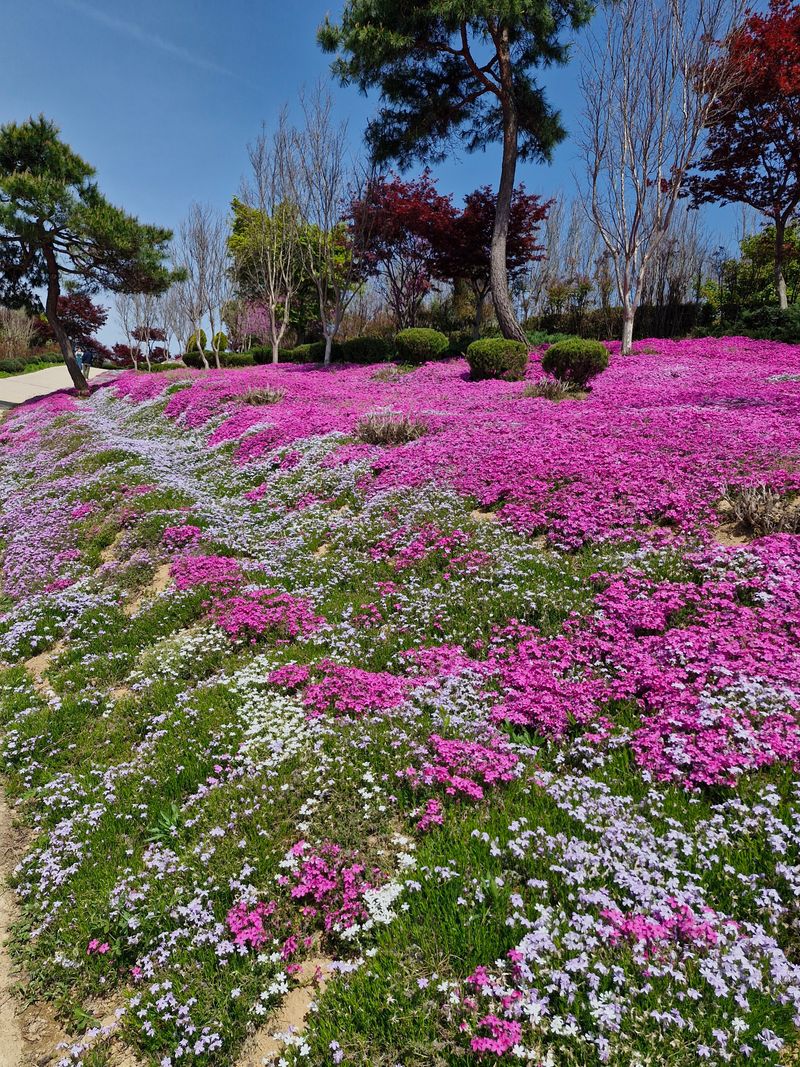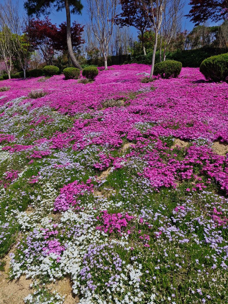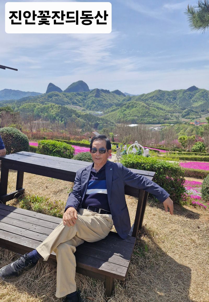 오늘은 초딩동창 모임 하는날! 평균 나이77세 들입니다. 어제 만나 하루밤 자고, 다슬기 국으로 아침식사후 진안 마이산 배경으로 조성된 꽃잔듸 동산에 나들이를 했답니다.