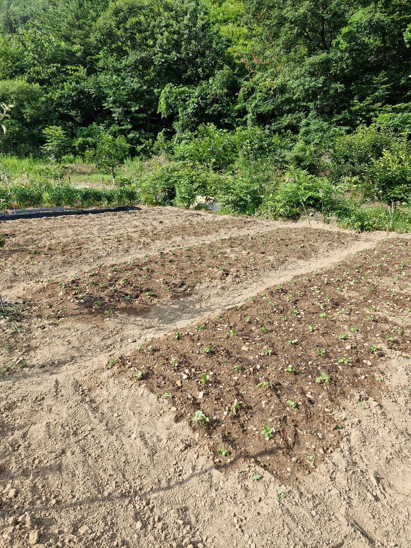 1. 수박 심을 이랑 만들기. 길이 1,380cm ÷ 60cm = 23 포기 × 2 = 46포기 2. 한두렁은 애풀수박, 둘째두렁 은 미니수박을 심을 예정. 3. 1공정 > 퇴비 살포 2공정 > 이랑만들기(땅파기) 3공정 > 밑거...