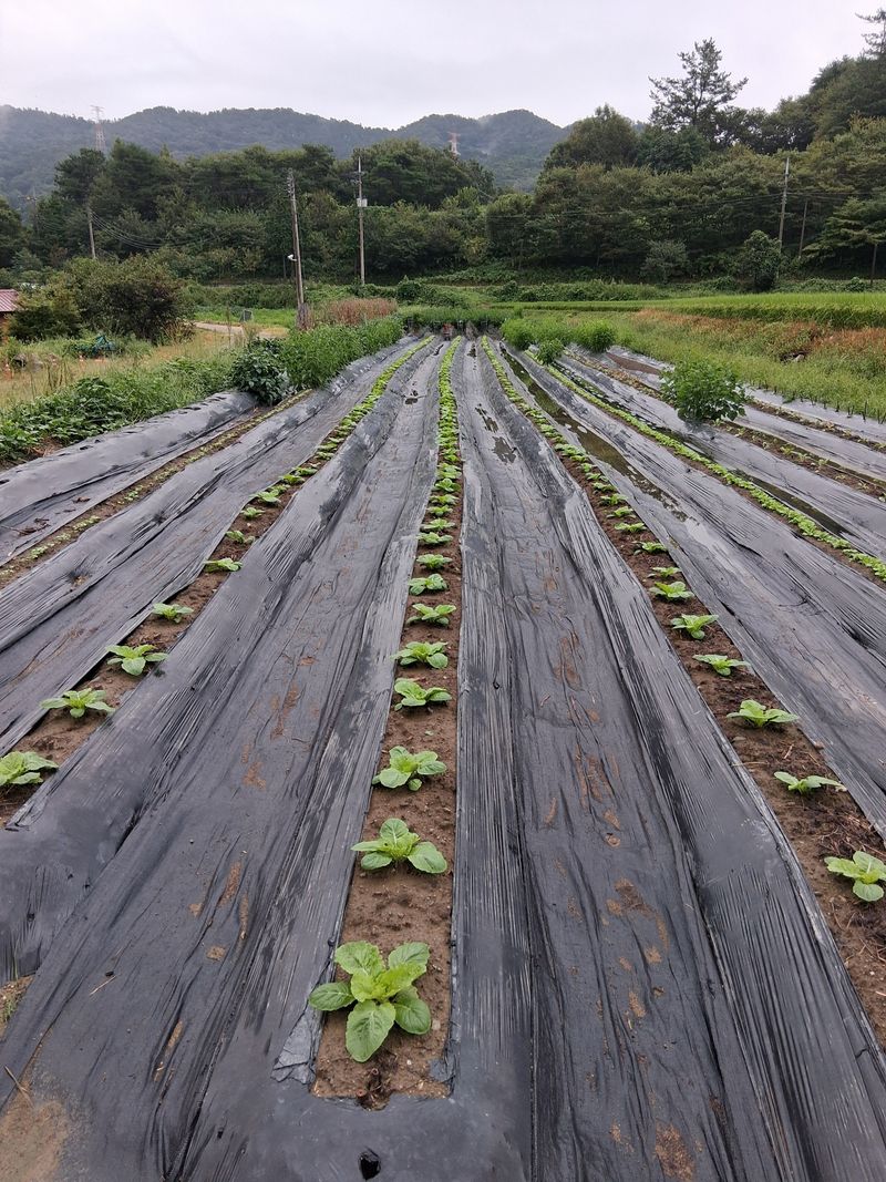 아침부터 시작하여 오후까 지 배추모종 300주 이식 완료하다.오전 이식후 비가 오후에도 이식이 끝나자 비 가와 물을 주지 않고 끝냈다.멀칭비닐을 갈라서 멀칭속 뜨거운 열기를 피해야 모종이 활착 할것 같아 더디지만 안전한 방 법을 모색 했다.