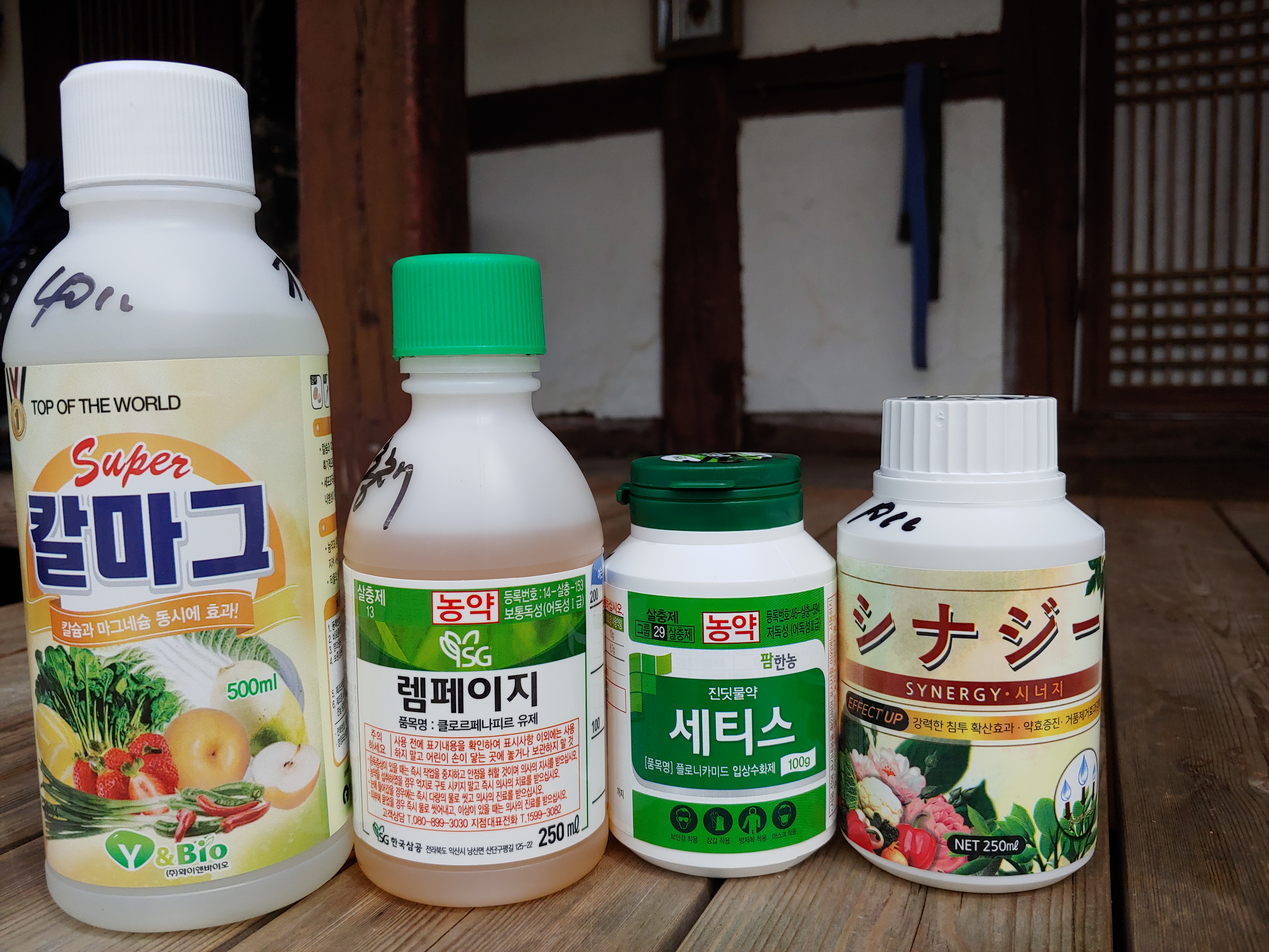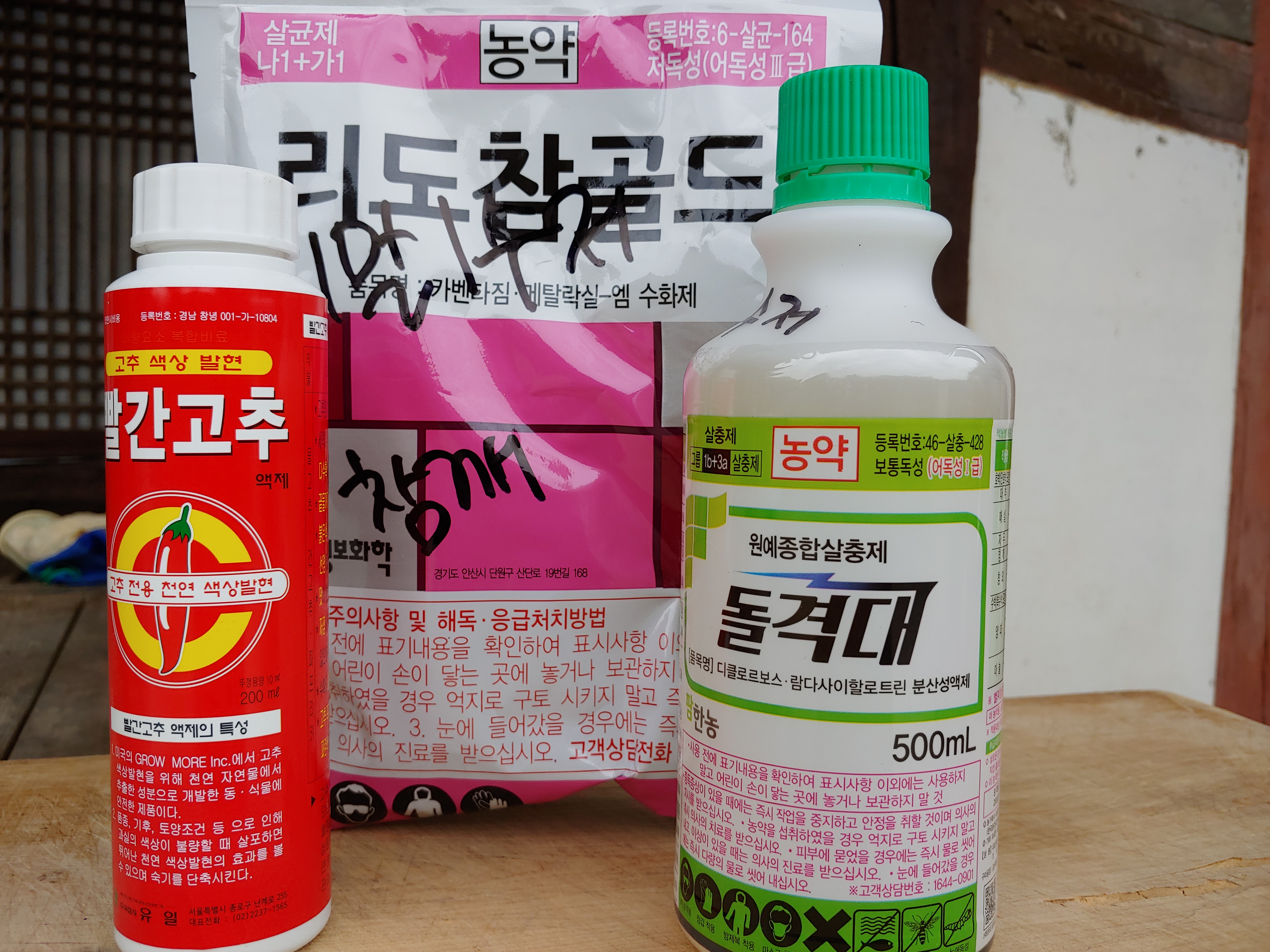 아랫논 참께밭 농약하다 역병;리도밀 골드 노린제:리모트, 충 나방;에니충 ,진딧물;보스카, 영양제;스테비아, 칼마그 혼합액 살포 보성 늘푸른 원예사 농약구입 리도참골드, .종합살충제 돌격대, 고추색상발현 빨간고추 구입하고 지주대값도 계산하다₩62,000
