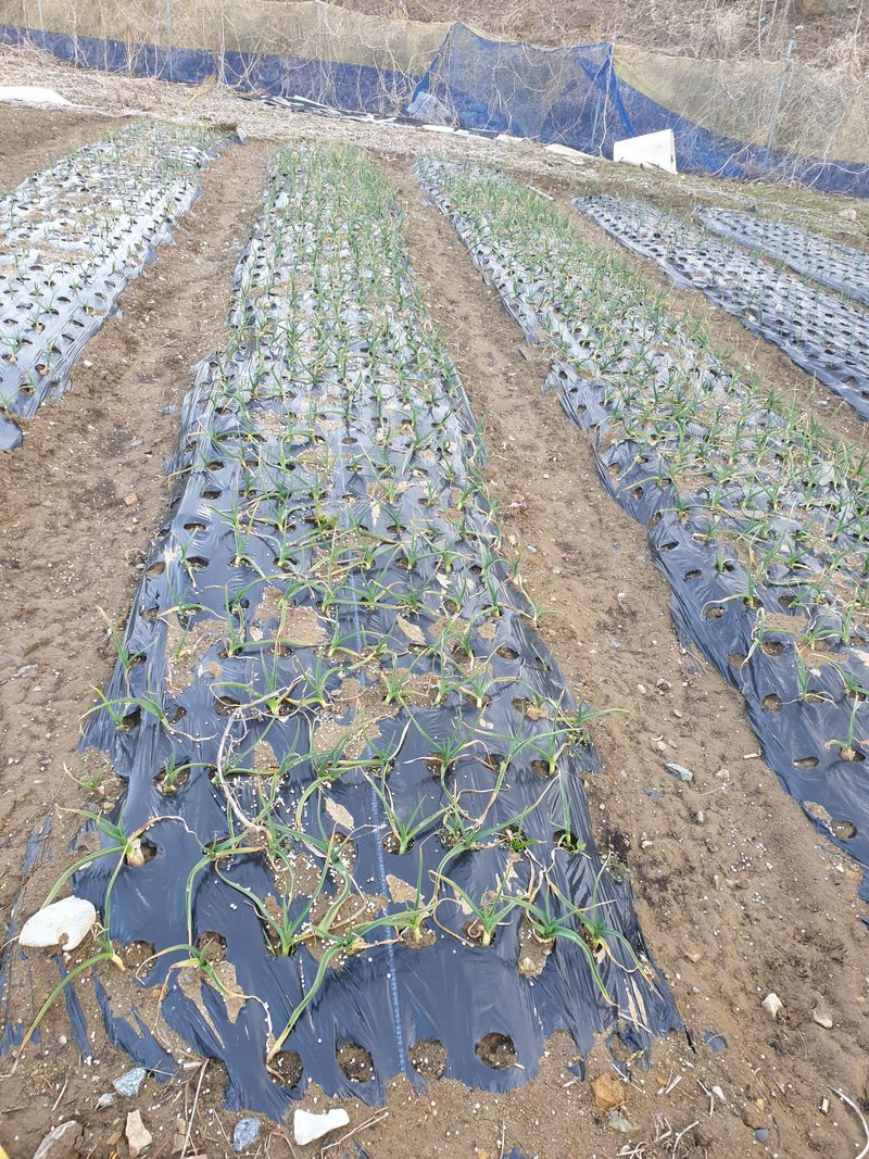 오늘 오후에 마늘과 양파 그리고 시금치에 웃거름비료 주었다