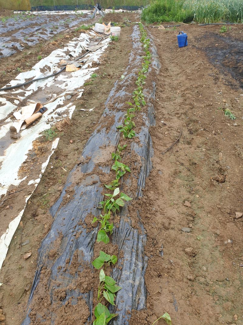 오늘 비가 내리니 고구마나 심어보자. 하우스에서 맛있는 고구마순 나온것으로 한고랑 심었다 (군뱅이 약과 유항울 뿌리고)