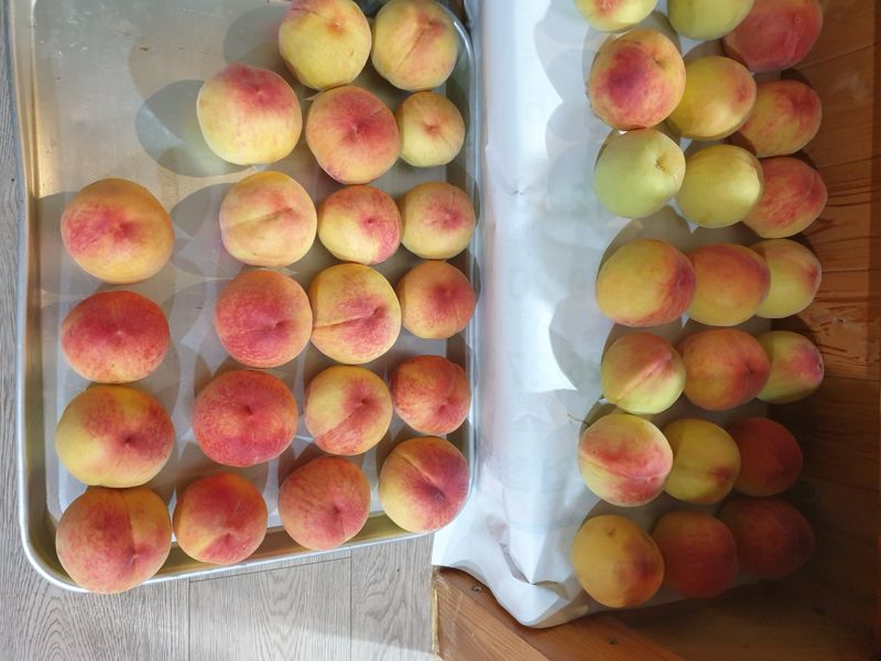 복숭아 를 따기 시작했다. 이렇게 예쁜복숭아를 수확하기 시작하면서 너무마음이 기쁘다