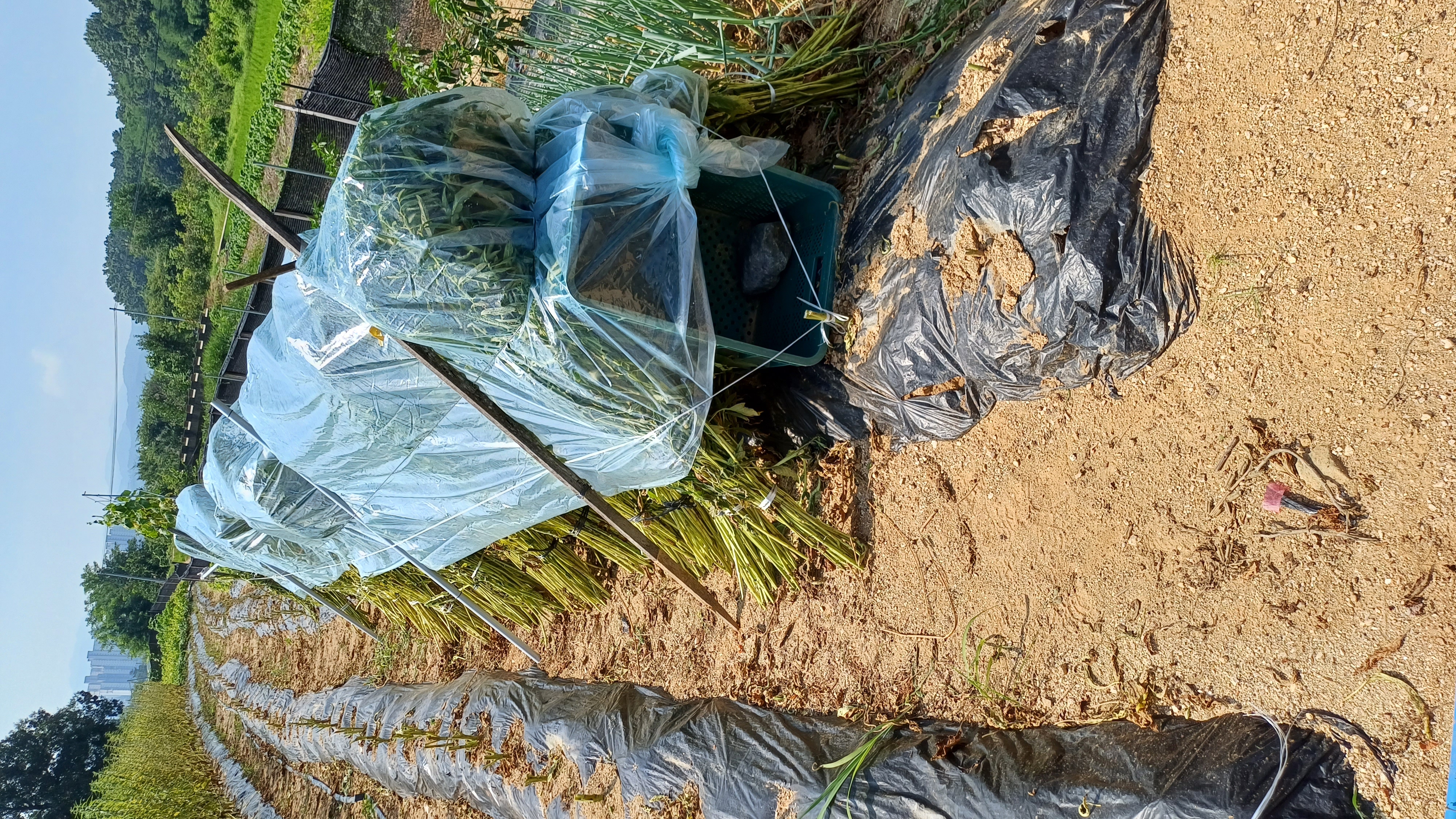 비닐멀칭 작업하고.왔음 포토에 심었던 강낭콩이식. 열무. 당근 조금씩 파종함