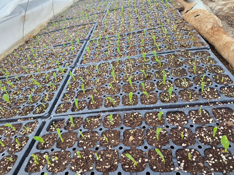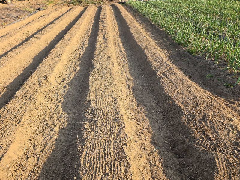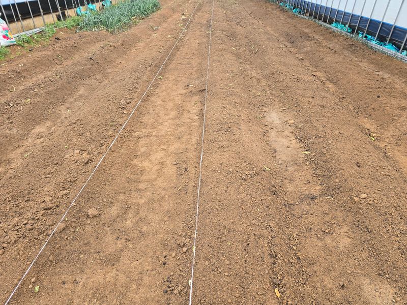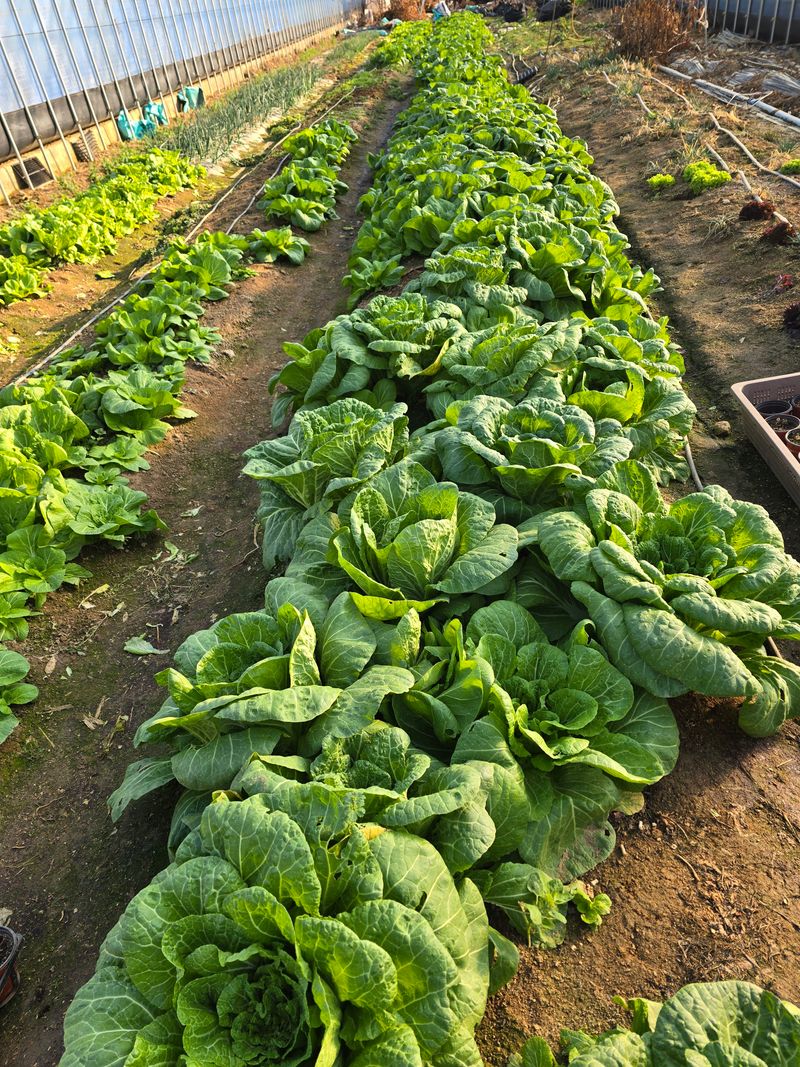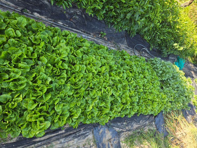 집 위 텃밭에 배추 50포기 심기 달고나 무 씨 뿌리기