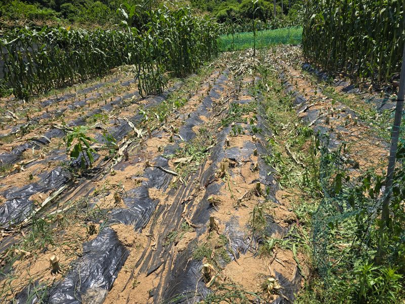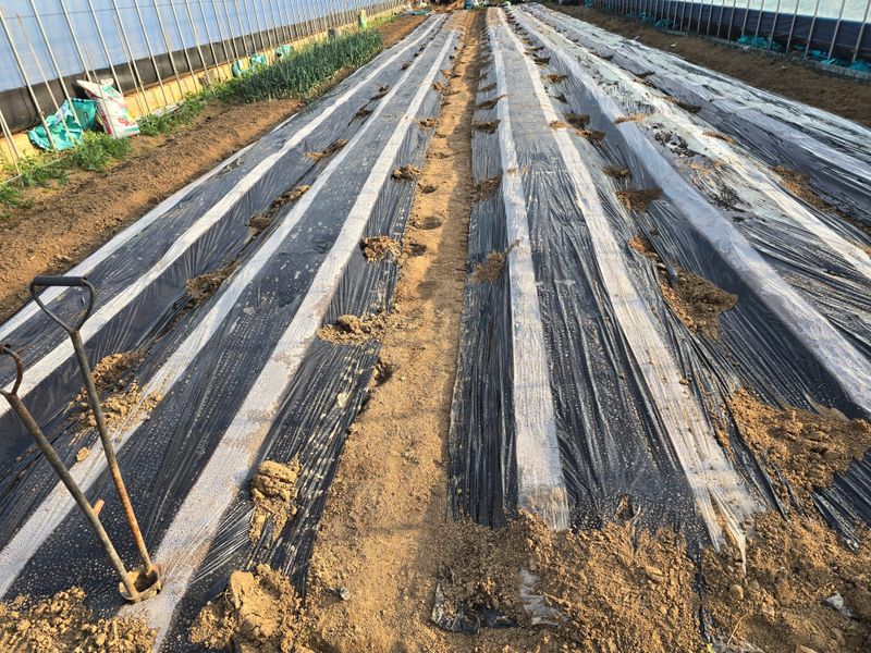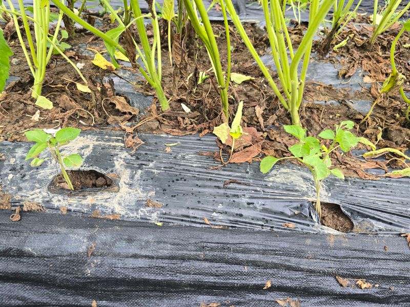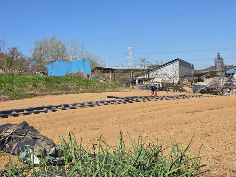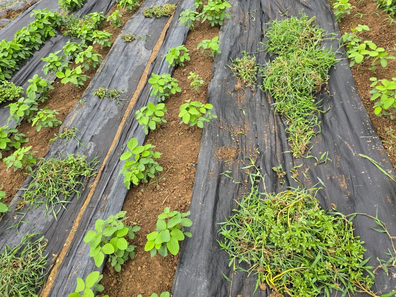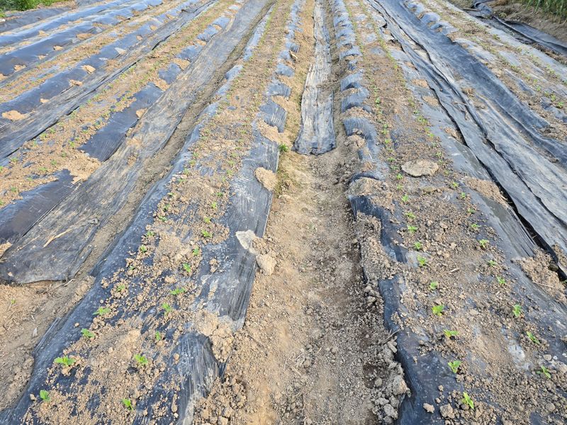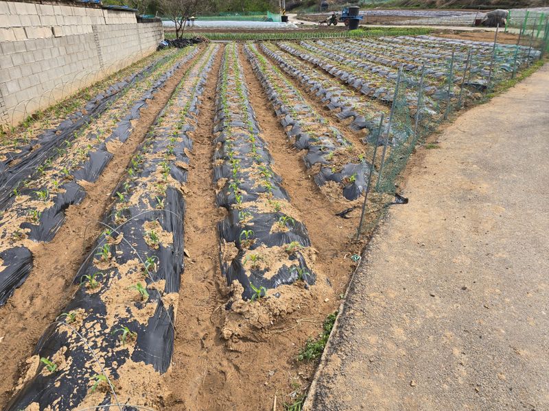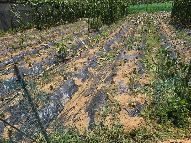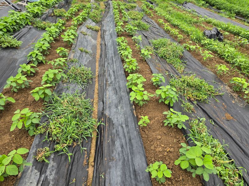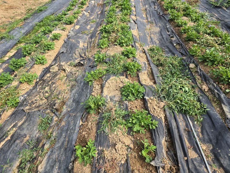 땅콩밭 꽃 관리 비닐 터주고 잡초제거
