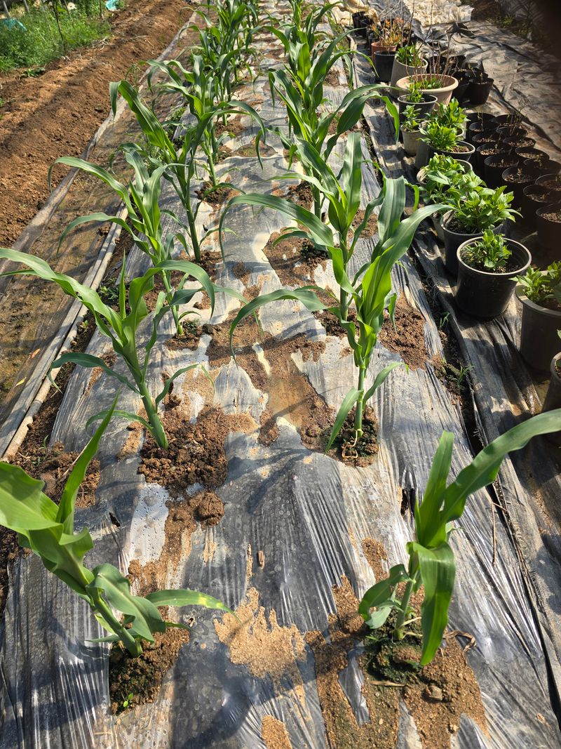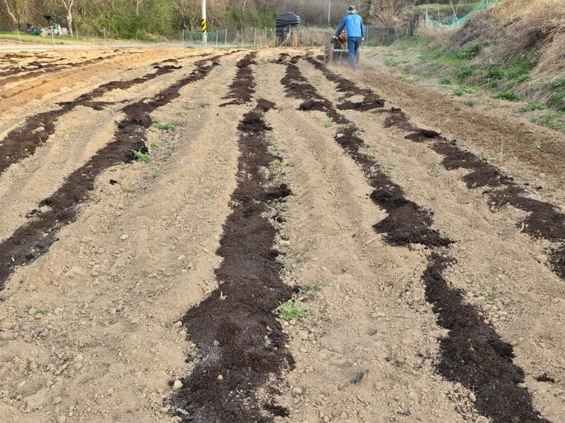 옥수수 밭 토양살충제, 비료넣고 혼화 물주기