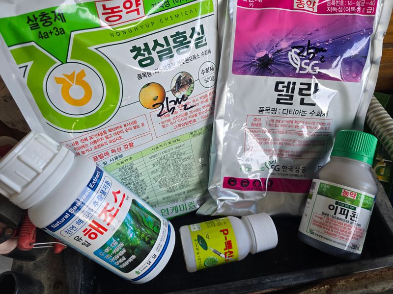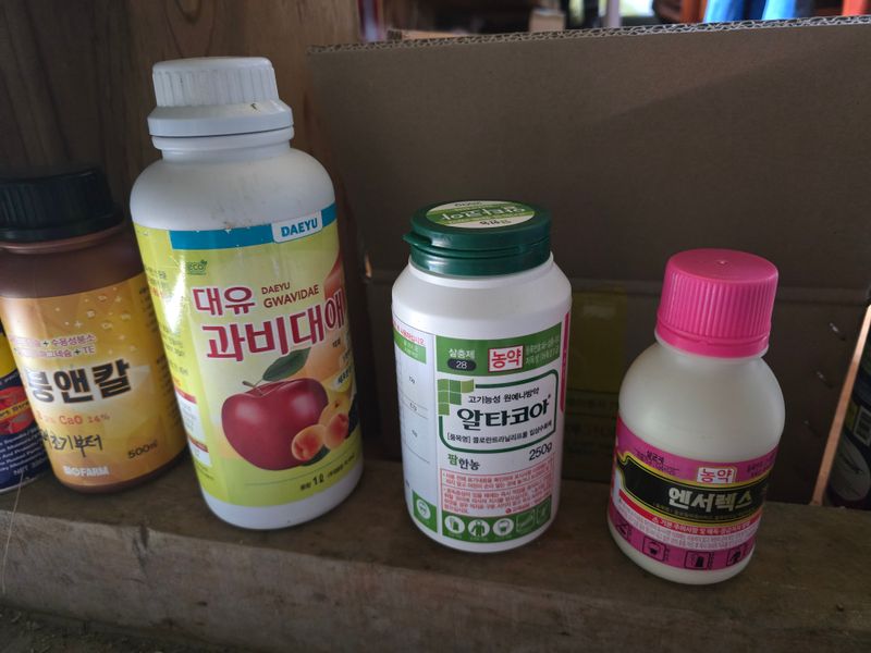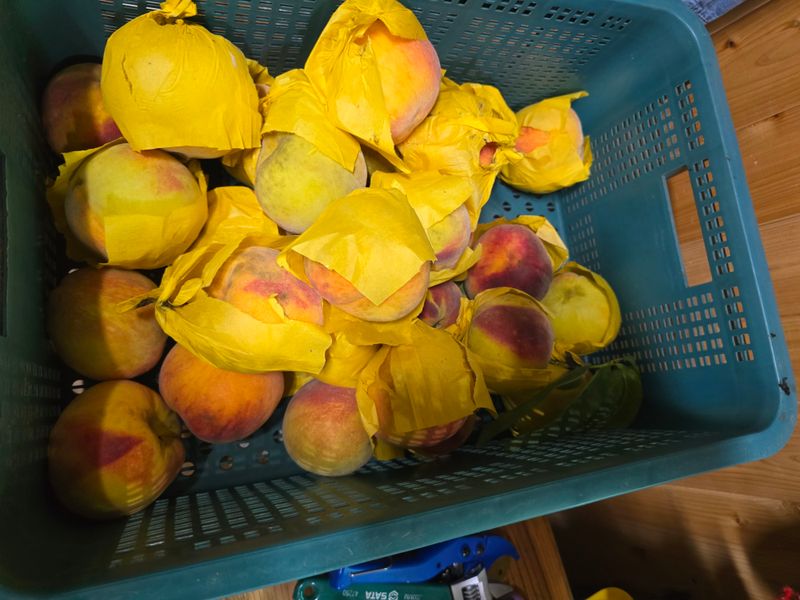 수확해서 효소 담기 매일 출근해서 복숭아 열매솎기
