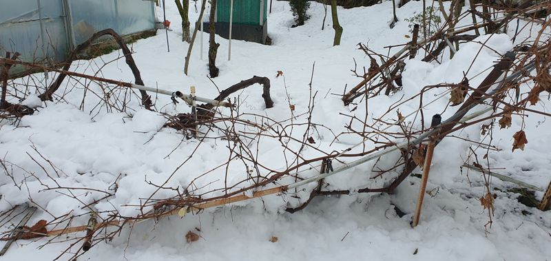 전정가지 세절 및 대추나무, 포도나무 일부 마무리 전정 제초매트 벗겨서 이랑 가운데로 몰아 놓음