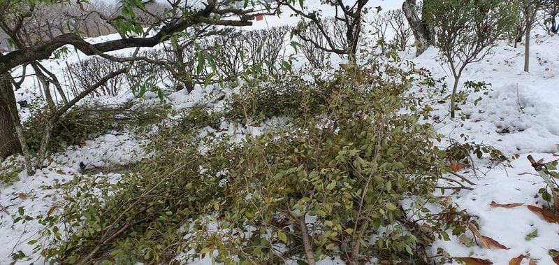 눈에 의해 부러진 나무가지 잘라내기, 눈에 덮혀 쓰러진 나무 일으켜 세우기 등