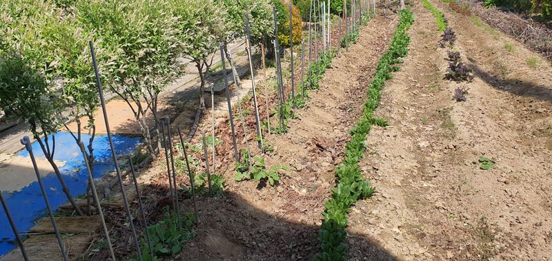 참죽나무 순따기 및 음나무,뽕나무,이팝나무, 밤나무 등가지치기. 미나리 수확, 완두콩 지주대 설치, 셀릭스 가지치기 부추수확 등