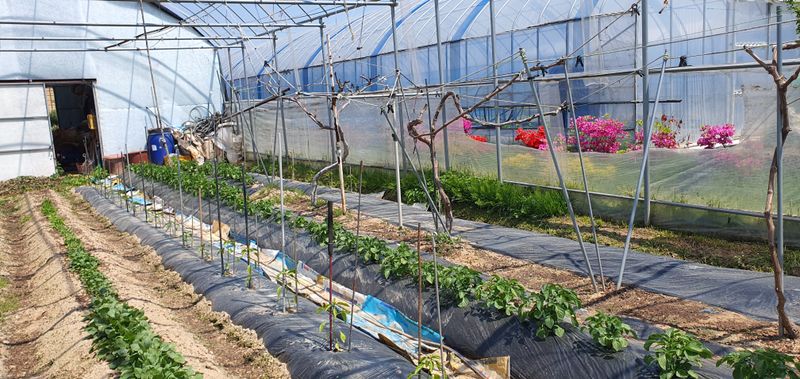롱그린고추 ,나무딸기,복분자딸기, 로메인상추, 꽃상추,청치커리 , 오이, 블루베리 수확