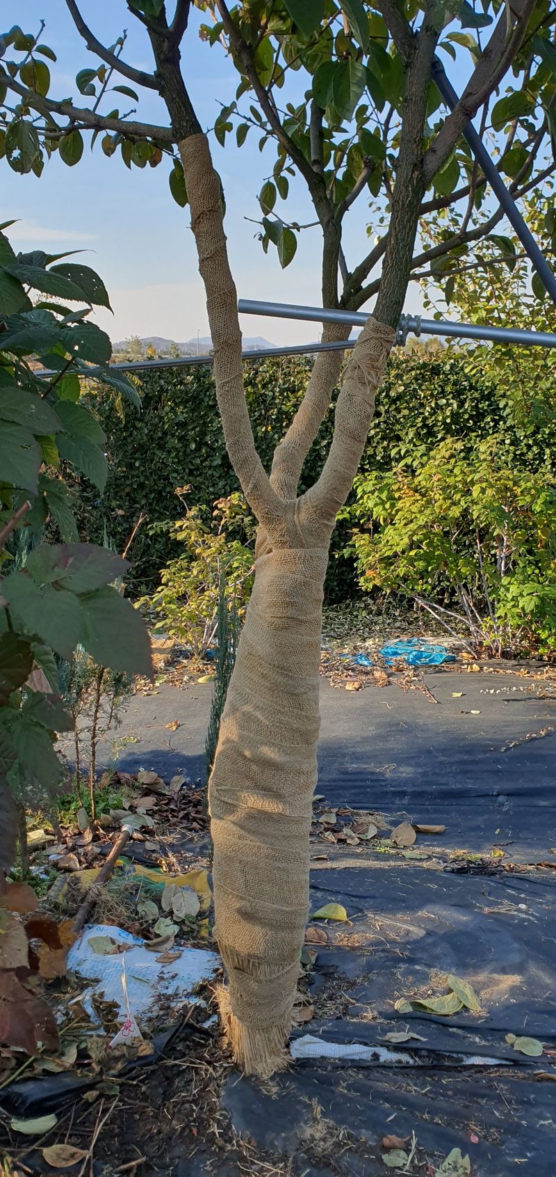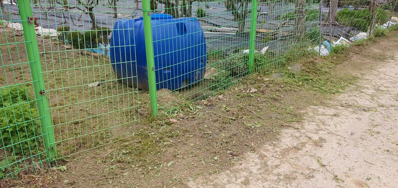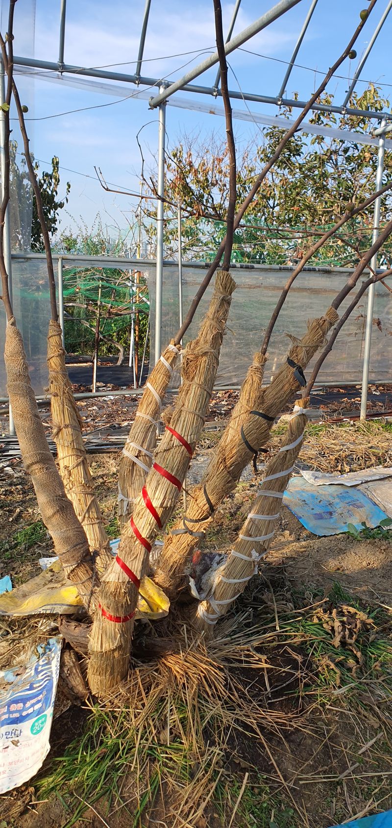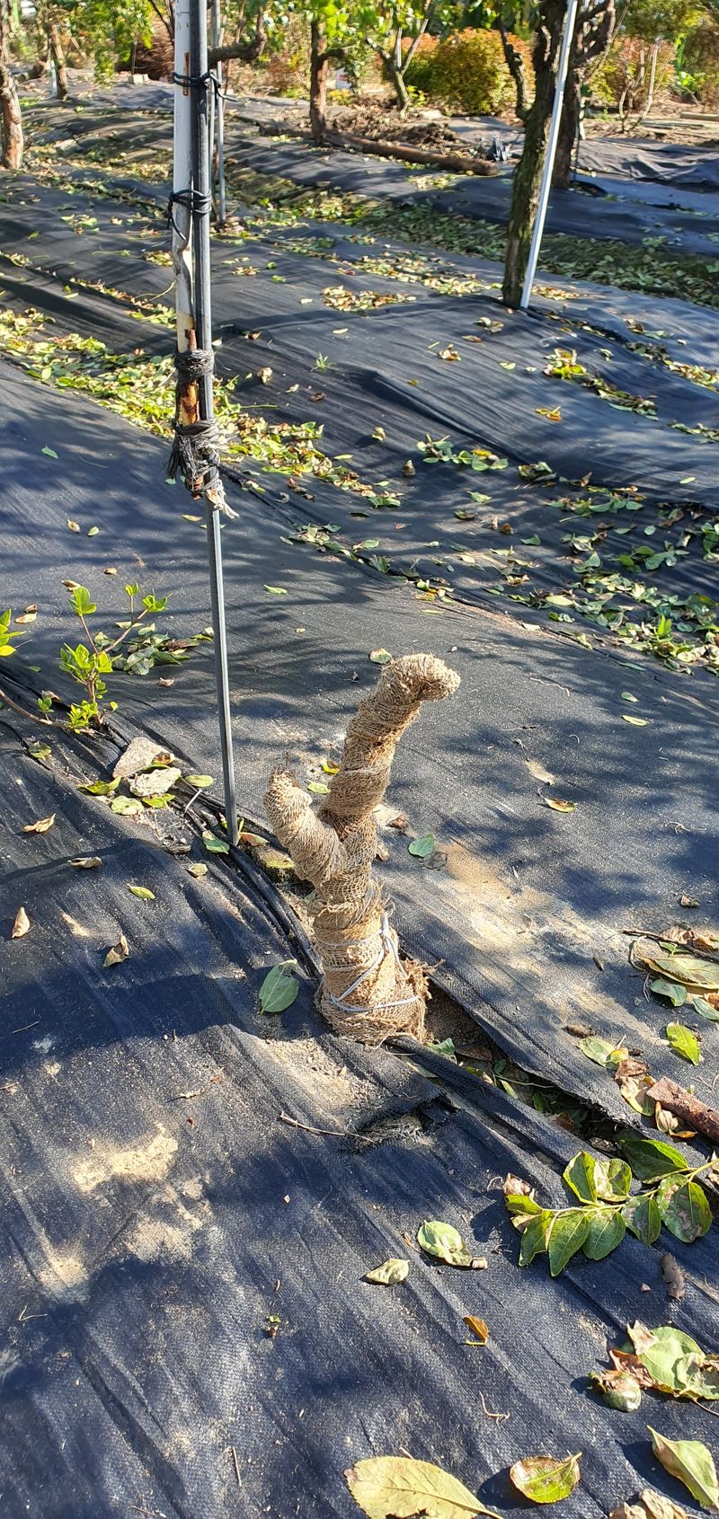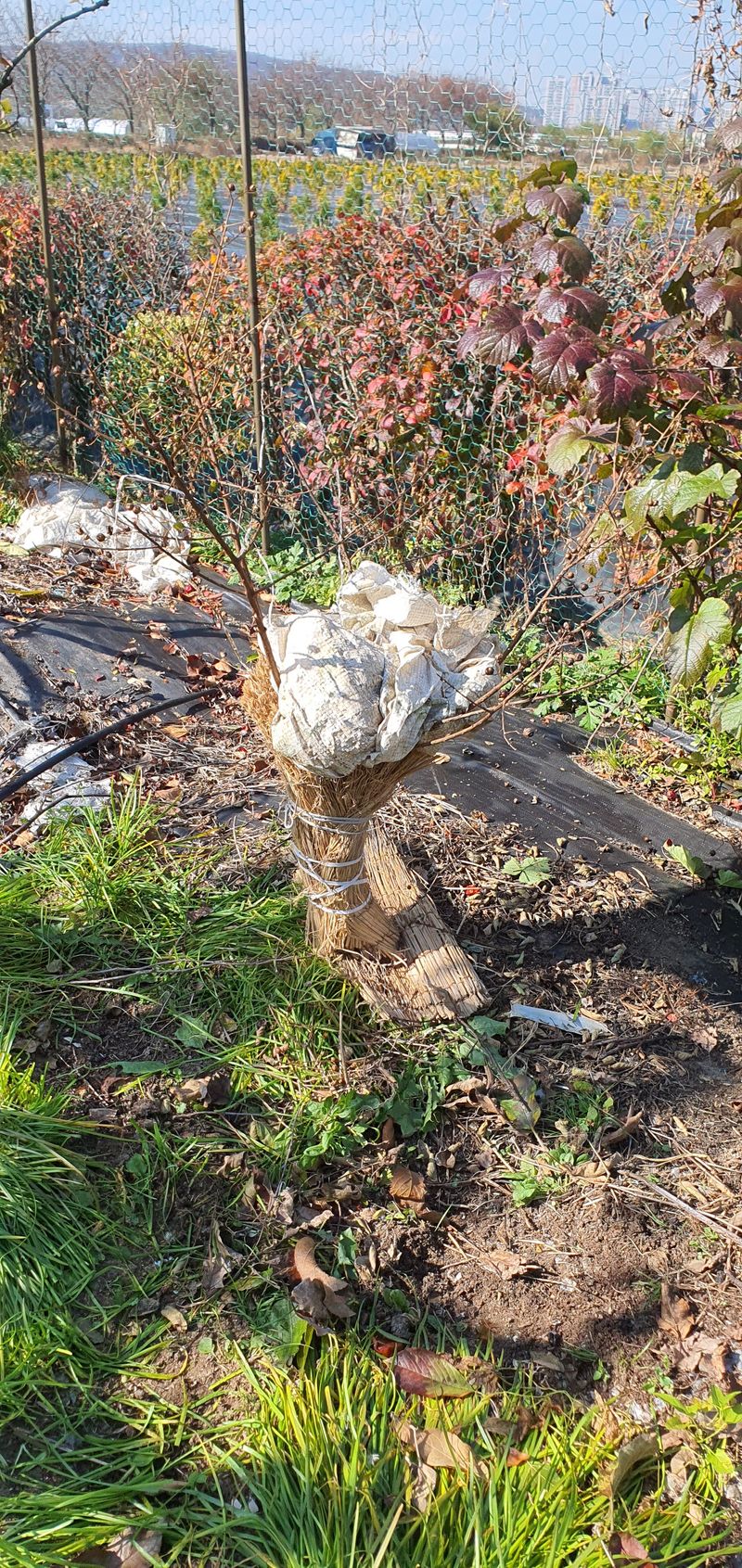 전정가지 잘게 자르고 제초매트 벗겨서 말아 놓기 대추나무 마무리 전정 완료