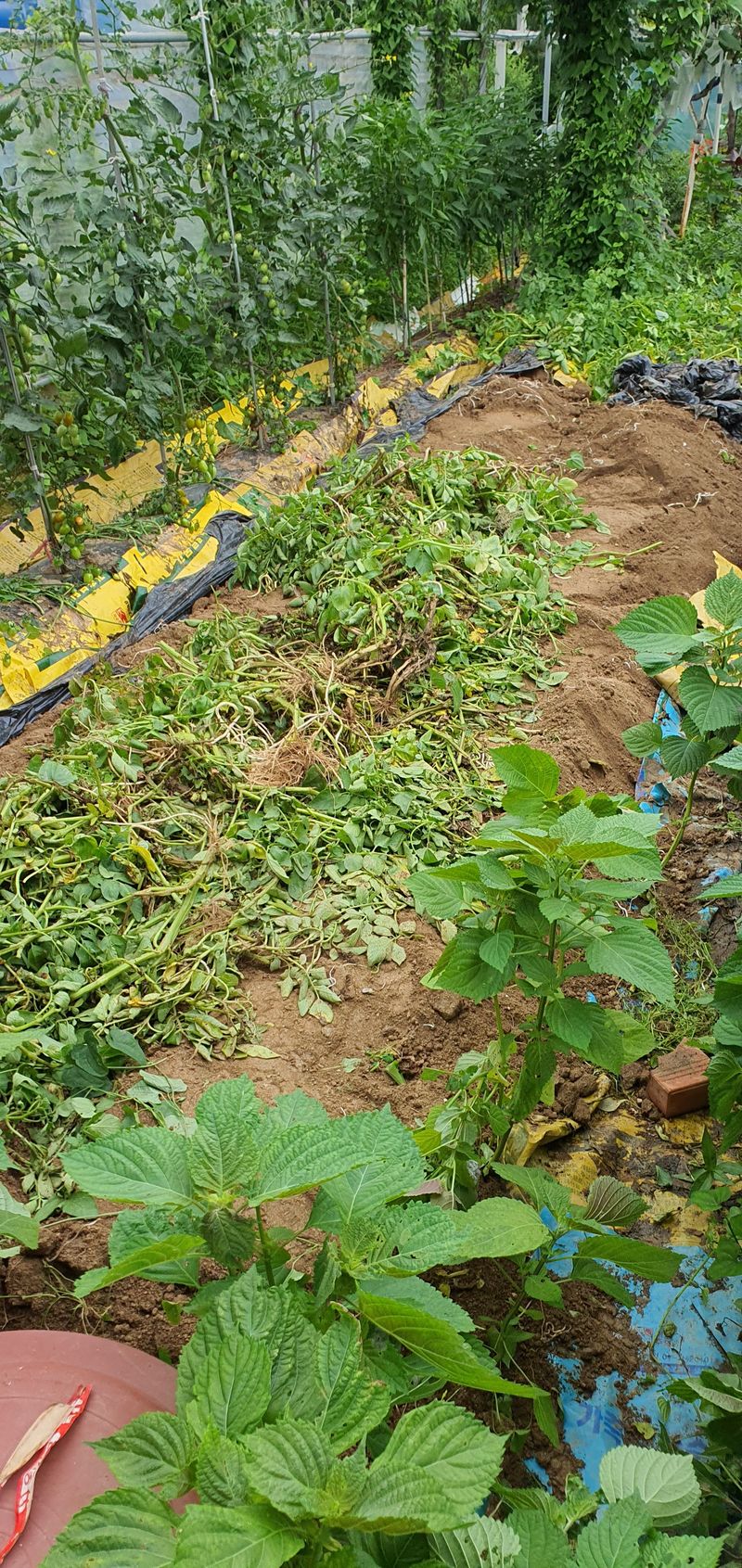 1. 수확: 블루베리. 롱그린고추, 오이, 복분자딸기, 나무딸기 2. 순자르고 부러진가지 정리 및 가지 고정하기 : 천황대추 3. 봉지 싸기: 배, 복숭아 4. 곁순제거 및 봉지싸기 : 포도 5. 잡초제거 작업