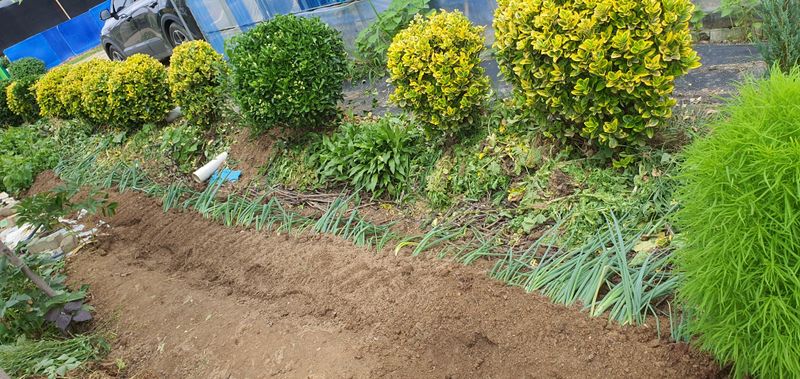 알타리무 수확. 제초매트 재피복,부추, 머위잎 채취등