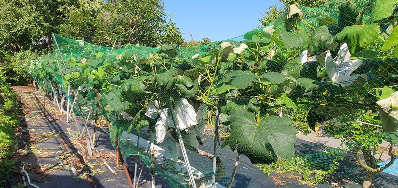 곁순 제거하고 포도알 솎아주고 봉지 씌우다