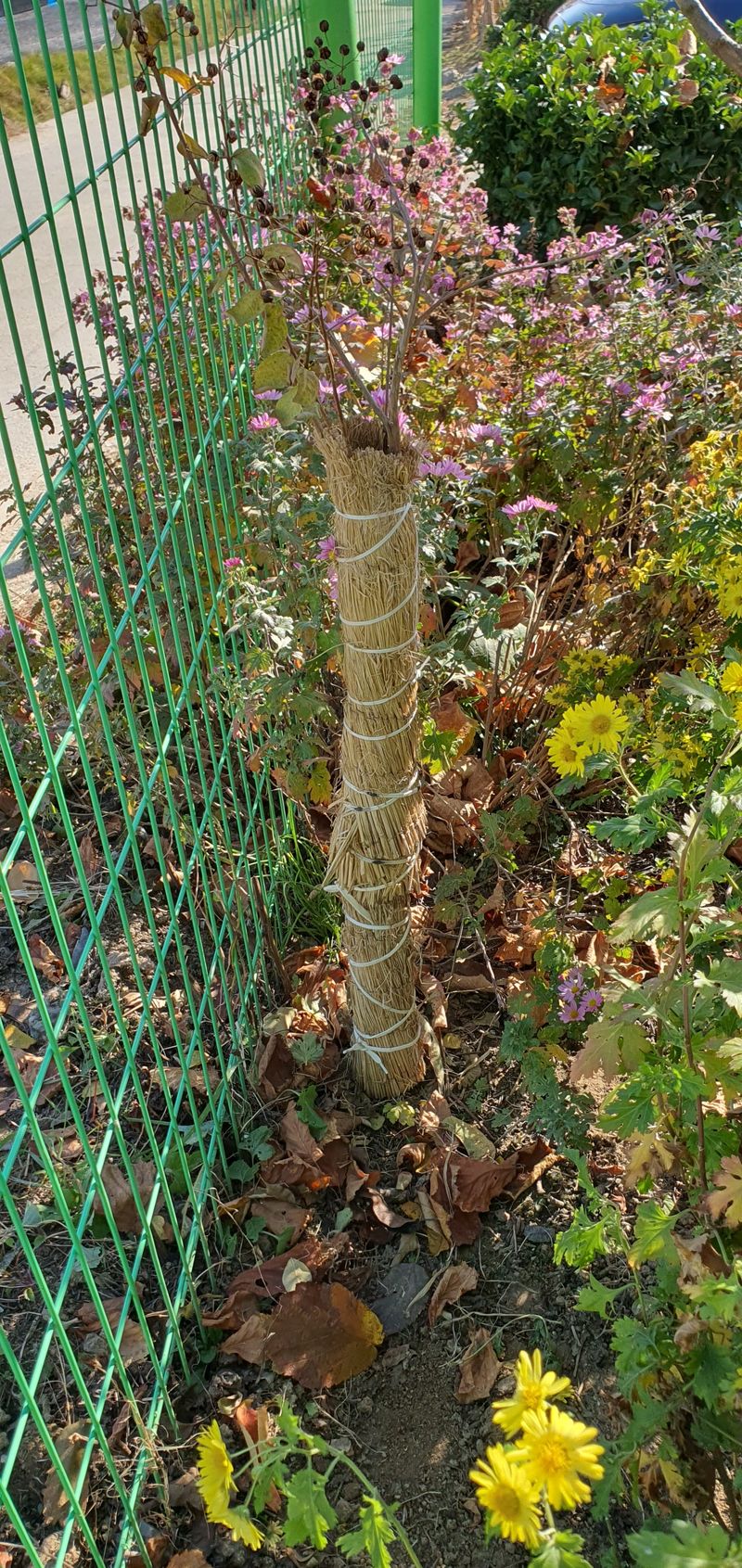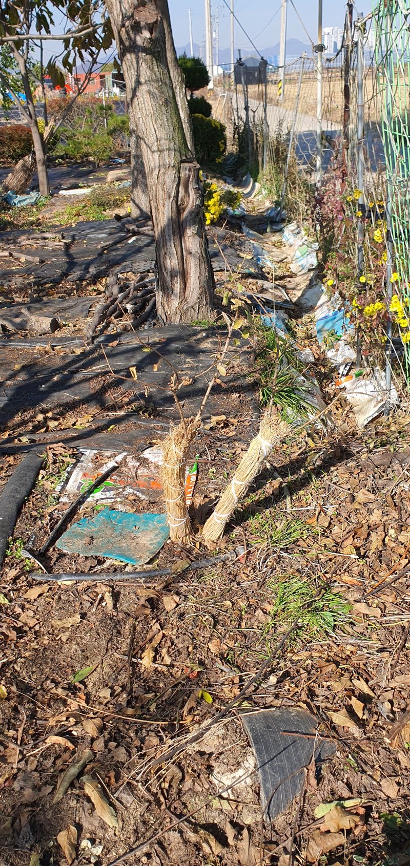 대추나무 등에 석회고토, 용성인비.염화가리.유박비료를 시비하고 제초매트를 다시피복하다. 알타리무 솎음